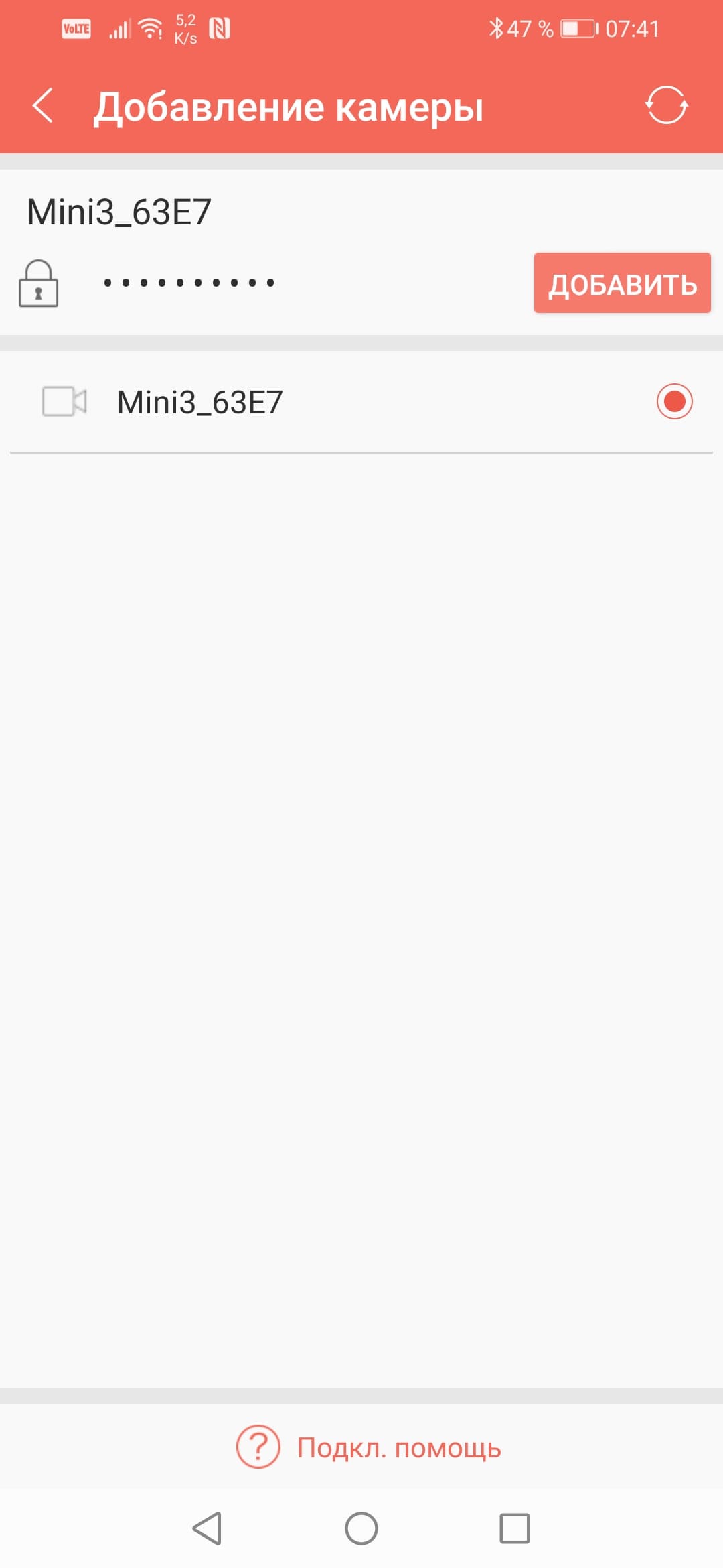 Если смартфон подключен к Wi-Fi-точке регистратора, то запущенное приложение автоматически распознает камеру, а в главной вкладке приложения появится возможность запустить прямую видеотрансляцию.