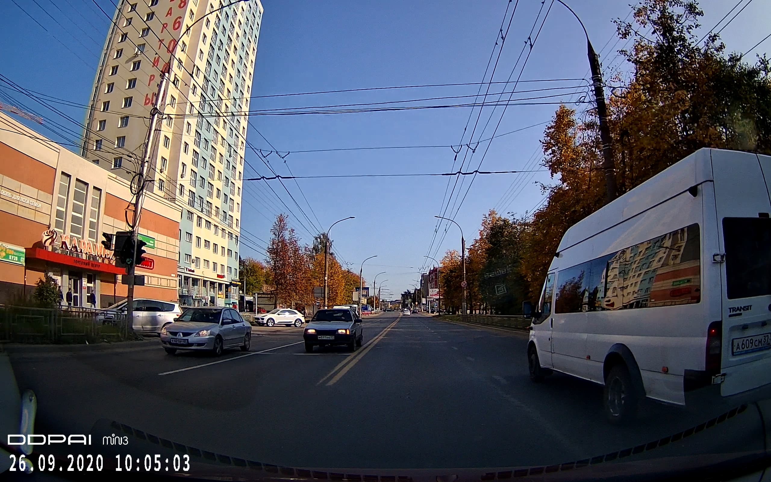 Кстати, из этих же стоп-кадров можно наблюдать очень неплохое (для недорогого регистратора) качество сжатия картинки. Но это статика. Взглянем, как работает кодек при наличии движения в кадре. Для начала при невысокой скорости и с хорошей освещенностью.