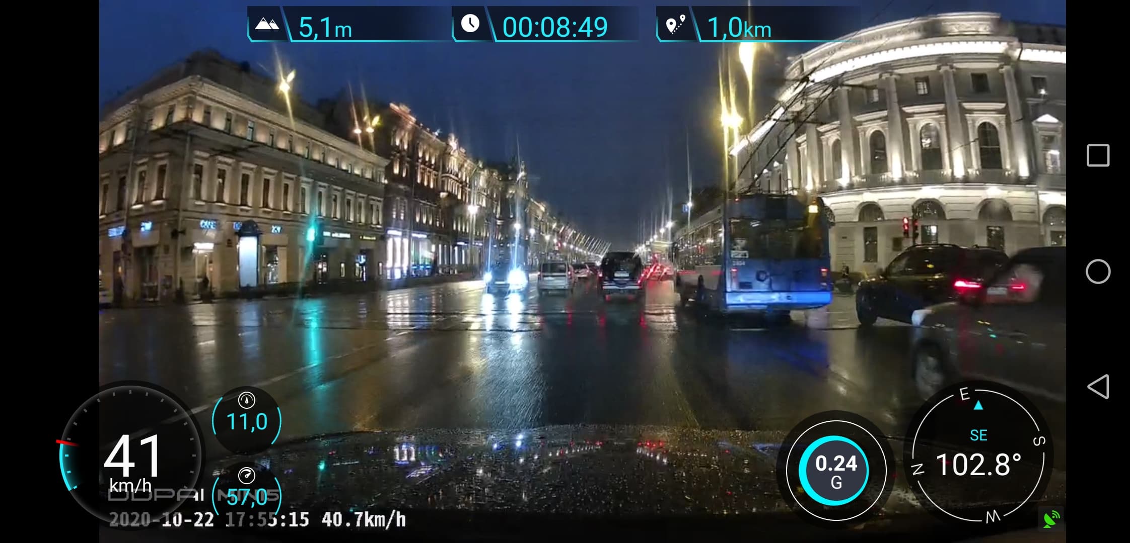 А вот если потянуть за правый уголок, карту сменит приборная панель, отображающая различные характеристики движущегося (ну, или не движущегося) автомобиля. Если телефон развернуть горизонтально — становится еще красивее. Ну, по крайней мере, разработчики точно так считают.