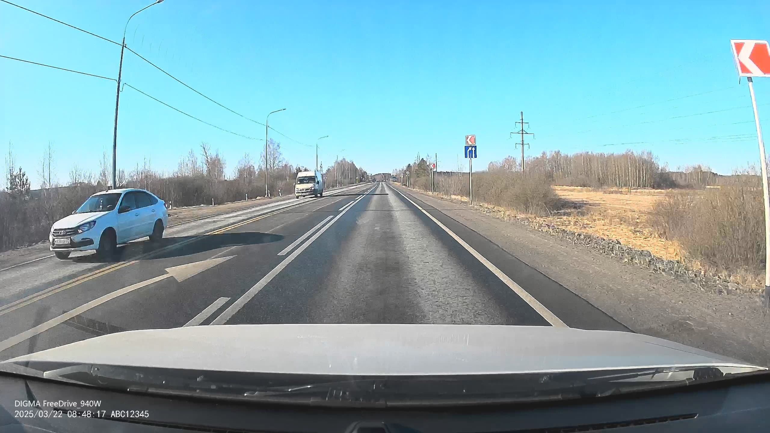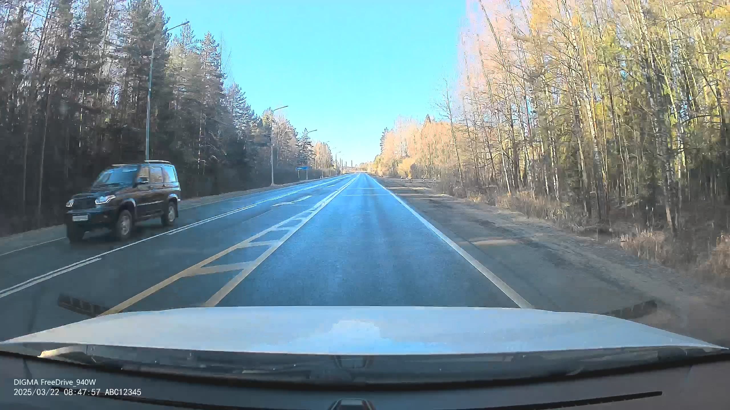Во время записи регистратор разбивает материал на отрезки заданной длительности, в нашем случае это 1-, 2- или 3-минутные отрезки. Материал сохраняется на карту памяти в папку с именем Driving. При срабатывании G-сенсора ролик будет записан в папку Event. Имена файлам регистратор присваивает по следующей схеме: 20250322_123111F.ts, где первый блок содержит текущую дату, второй блок — время, а буква F означает Front — фронтальная камера.