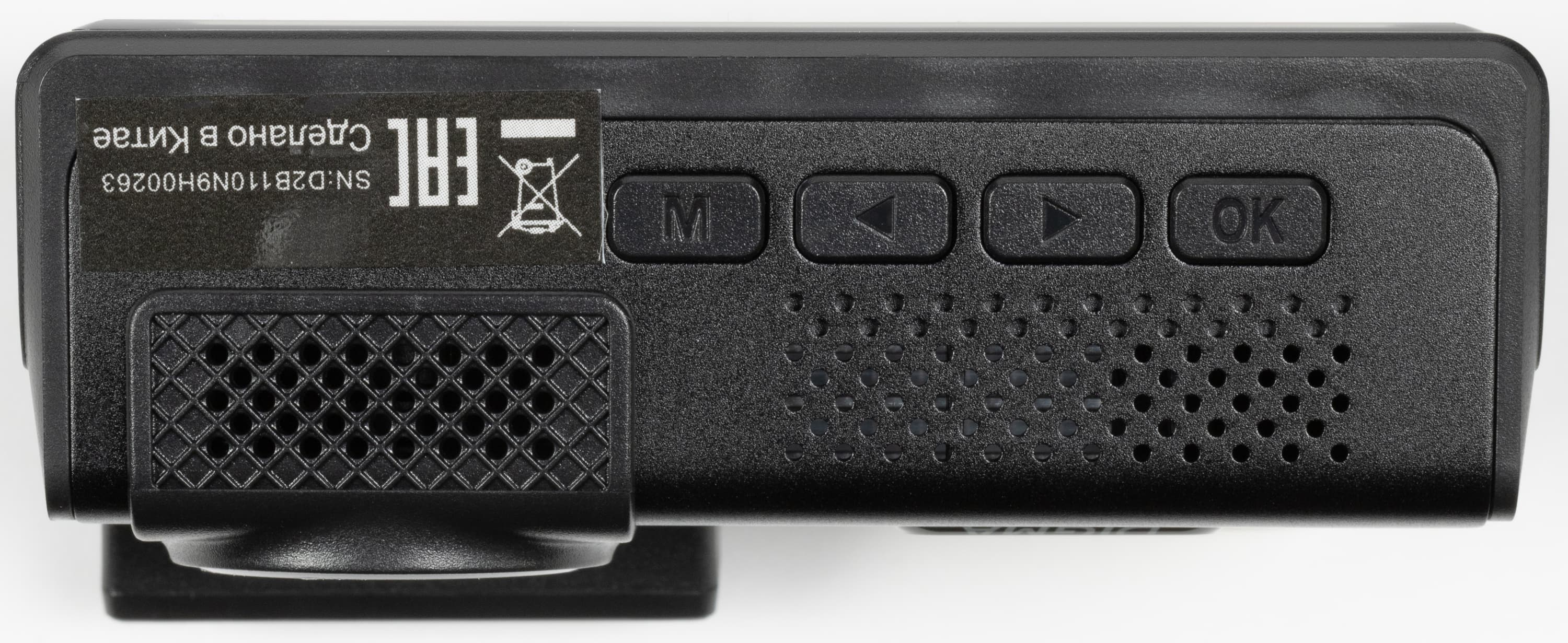 На левом торце корпуса находится еще одна кнопка, пятая. Это кнопка питания, долгое нажатие которой включает/выключает регистратор, а короткое нажатие гасит и включает экран. Правый торец содержит слот карты памяти, Type-C для питания регистратора аудио/видеовход для подключения камеры заднего вида (дополнительная камера приобретается отдельно).