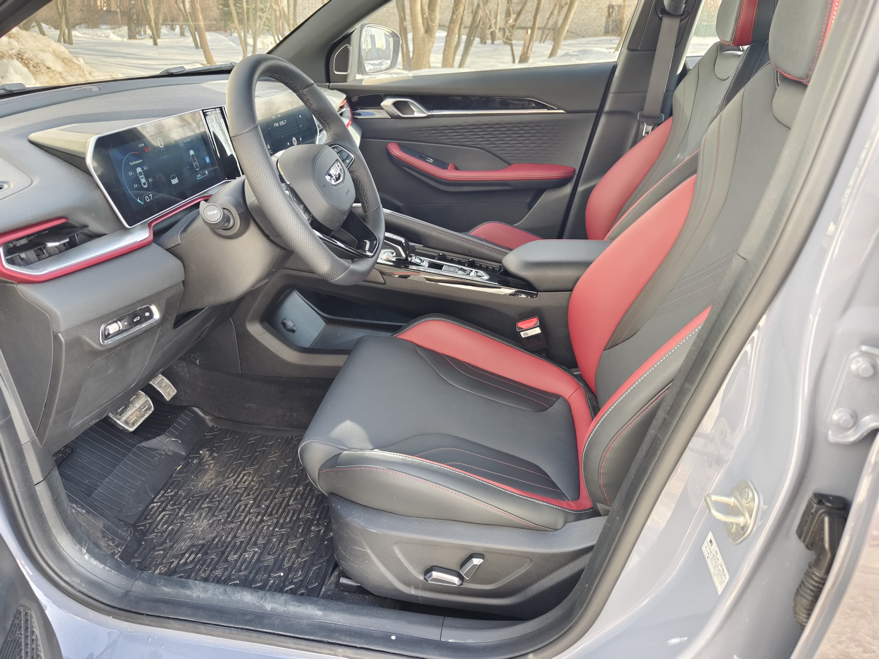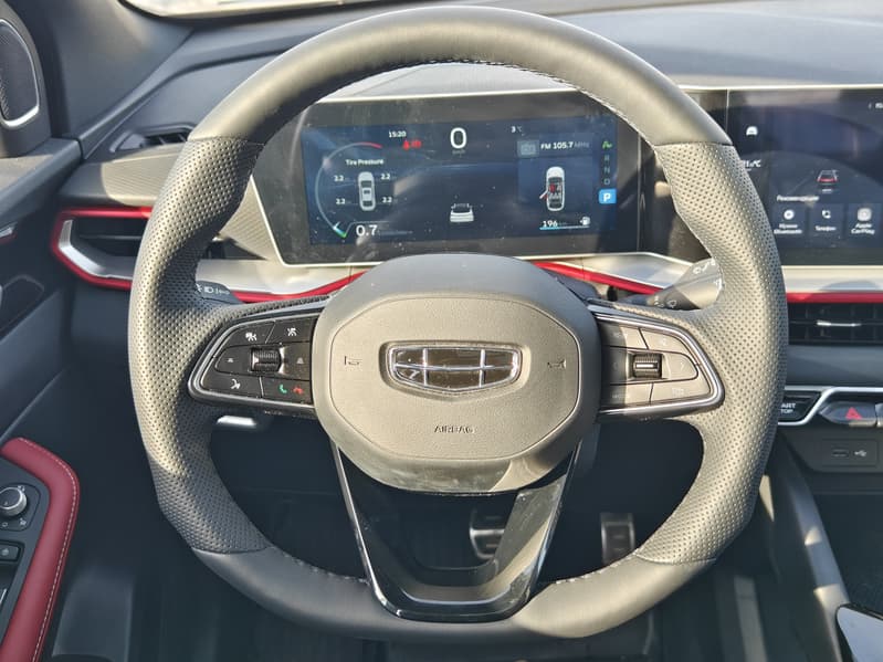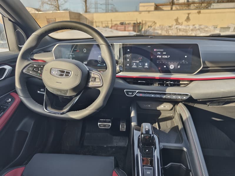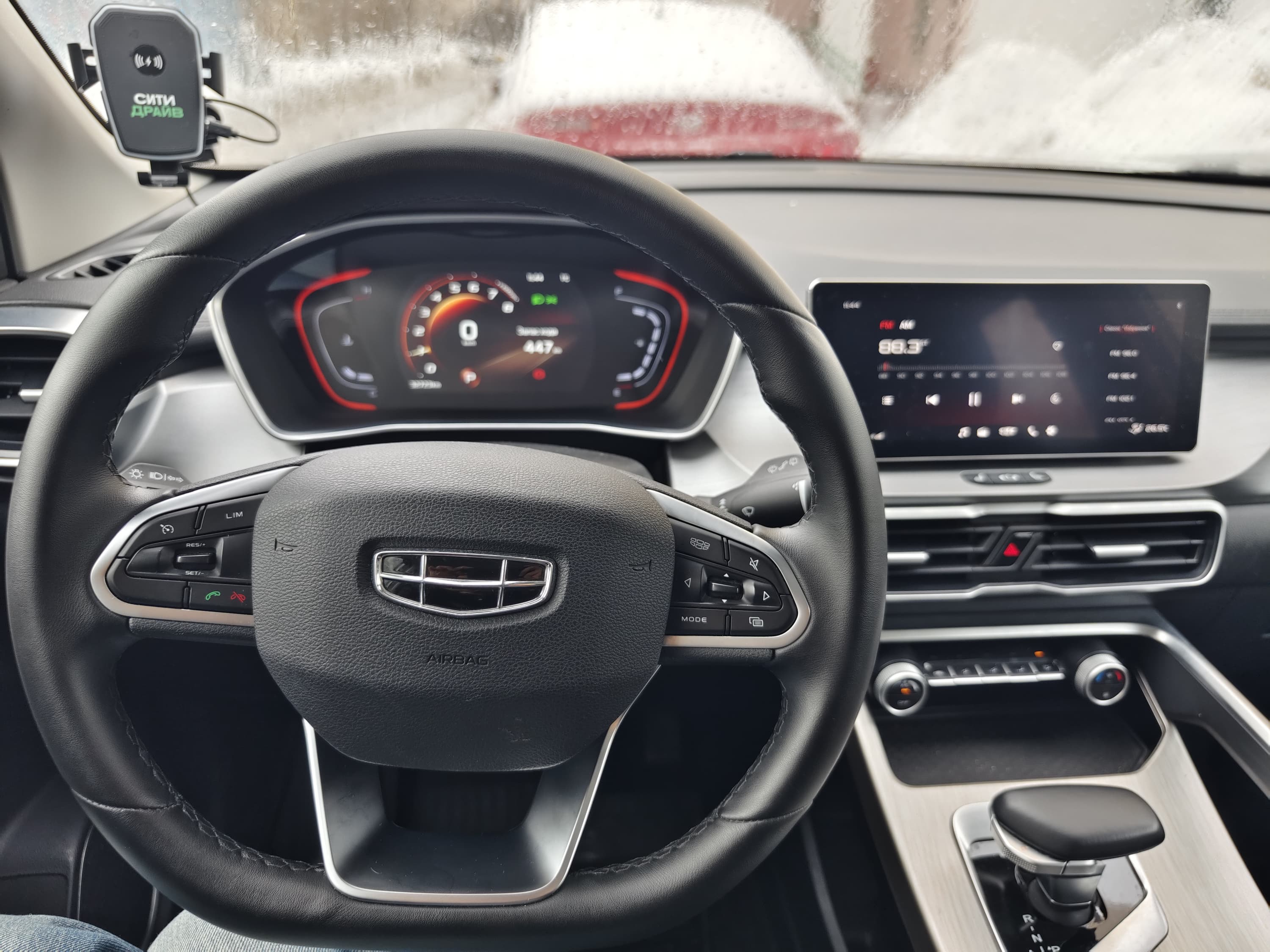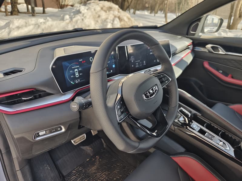 Сидя за рулем обновлённого Geely Coolray, можно почувствовать очень продуманную посадку, что не является обыкновением для автомобилей китайского производства. Разнообразие настроек сиденья и рулевой колонки позволяет найти максимально удобное положение, а толстая рельефная обивка руля и хорошая боковая поддержка подчёркивают спортивные нотки компактного внедорожника.