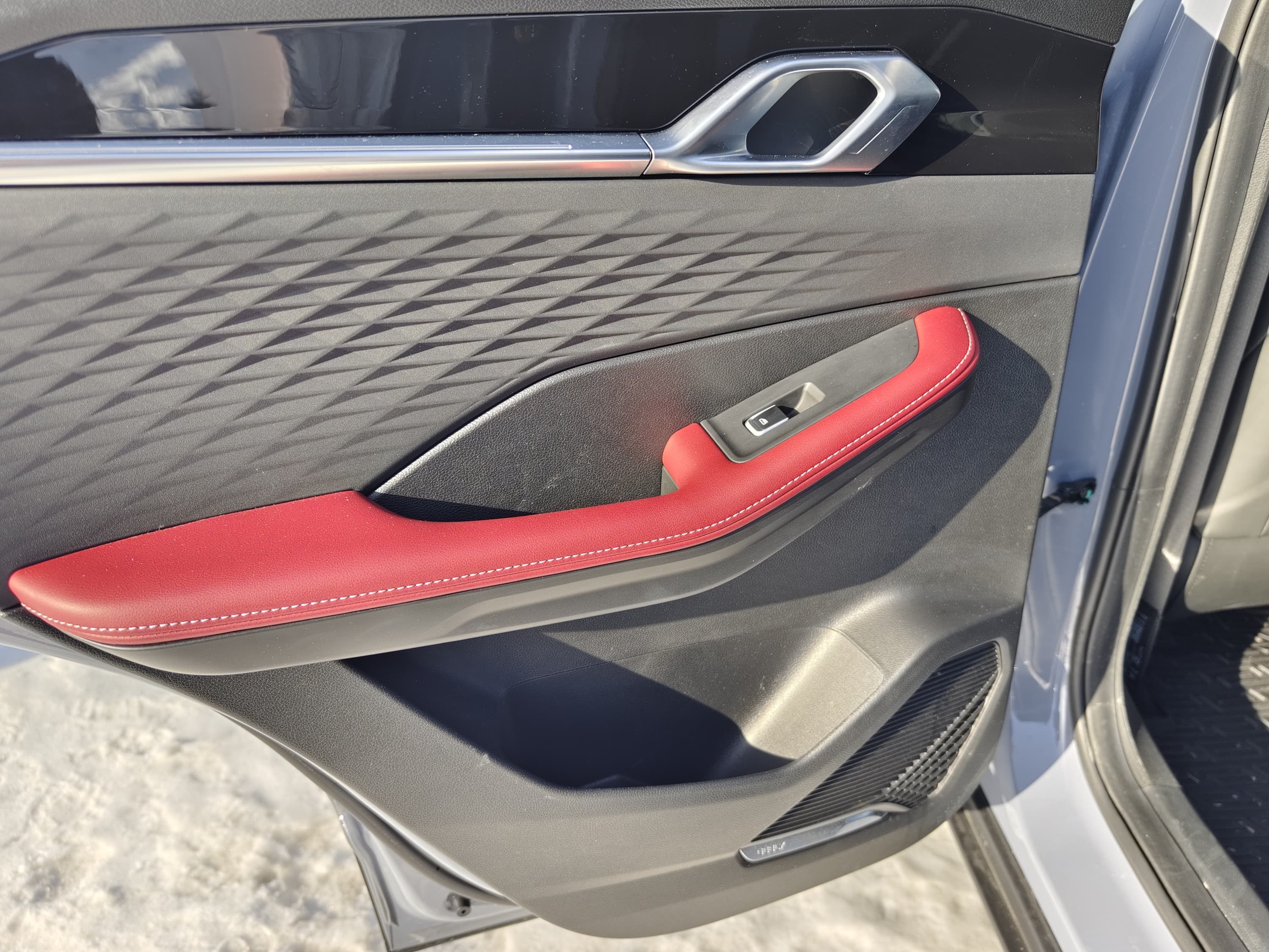 В новом интерьере пропала аккуратная и удобная дверная ручка первого Geely Coolray. Новые ручки, хоть и качественные, но не придают такого шарма. Также стоит отметить, что даже базовая комплектация включает кресла с эко-кожей. В версиях повышенной комплектации добавлены вставки из искусственной замши на центральной части сидений.