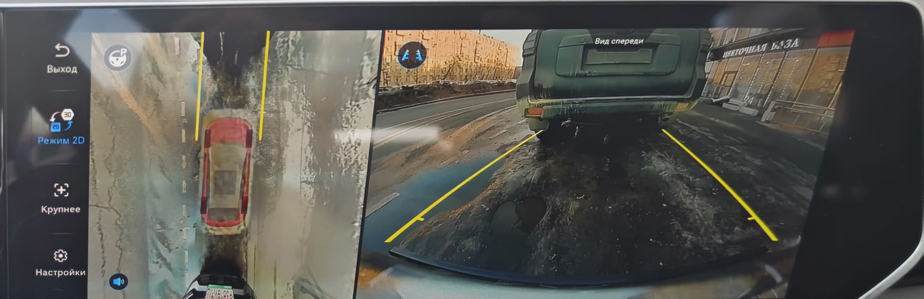 Качество установленных камер кругового обзора можно охарактеризовать как «приличные». Они намного более качественные, чем у Haval M6 и немного лучше, чем у Dashing, который мы тестировали недавно.