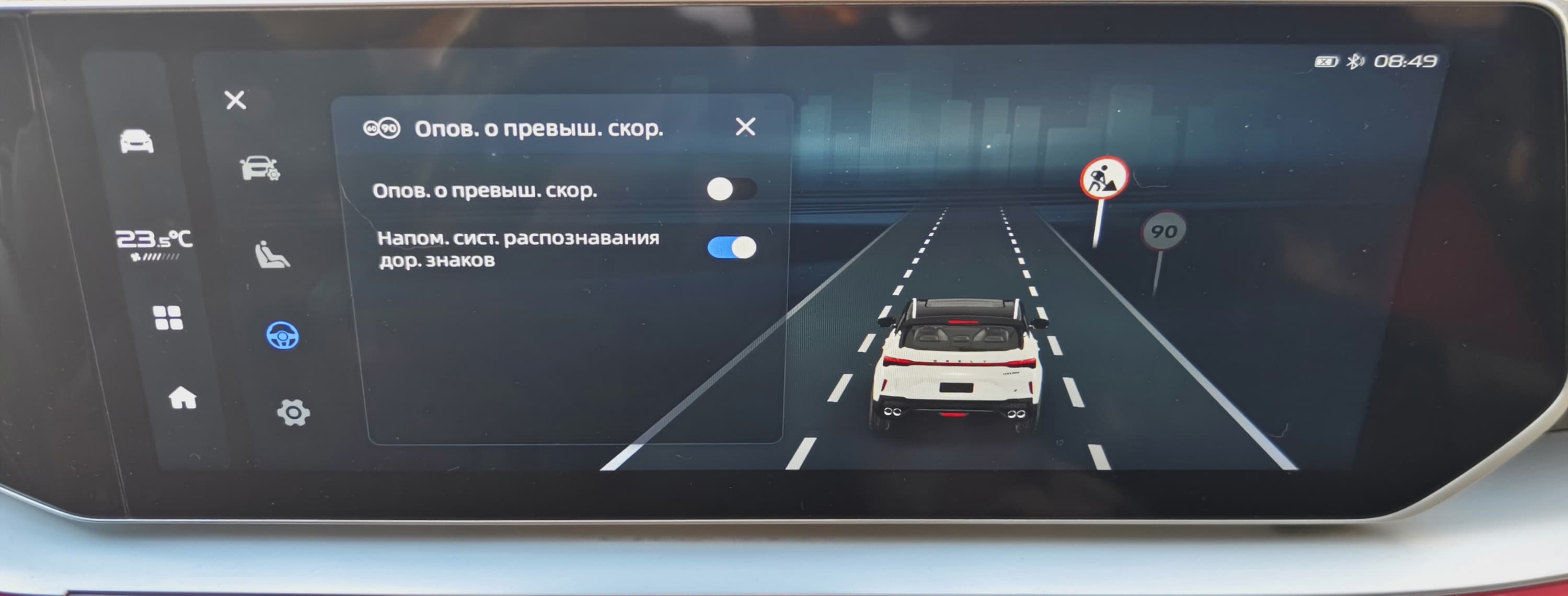 Но, начиная знакомство с ней, обнаруживается, что поиск и активация определенных функций требует времени и умения: попробуйте хотя бы найти и включить подогрев руля без предварительной подготовки. Эта возможность скрыта в меню, которое можно вызвать неочевидным свайпом сверху вниз по ЛЕВОЙ стороне дисплея.