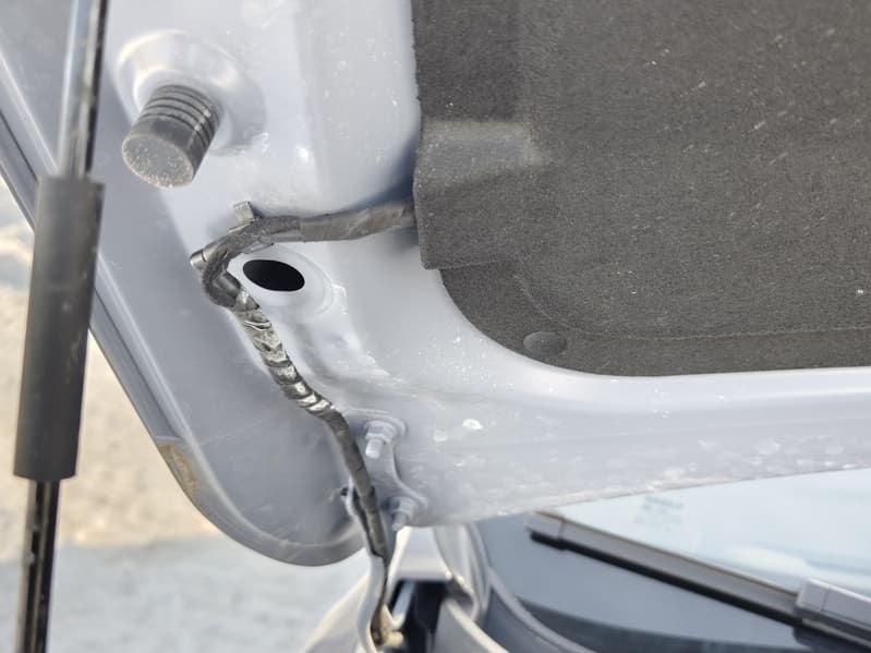Решение спрятать трассу для стеклоомывающей жидкости под вибро-шумоизоляционную панель под капотом — недурна. Равно как хорошо выглядит крепление форсунок на краях капота, со внутренней его части. Но есть предположение, что при очень низких температурах, в местах, где трасса тянется у правой стойки и уходит в полость крыла, может возникать промерзание.