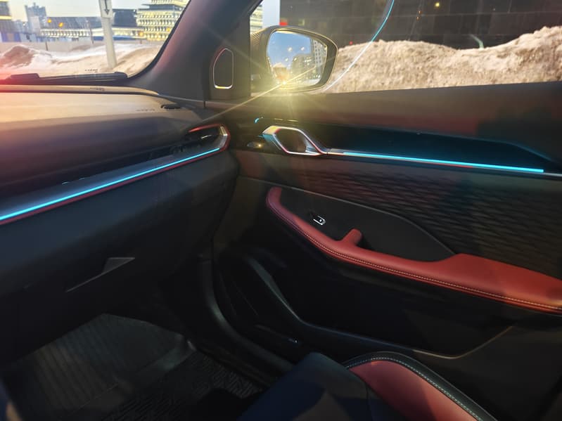 А ещё задних пассажиров теперь тоже окружает стильная контурная подсветка, смену цвета которой можно привязать к ритму играющей музыки или выбранному ездовому режиму.