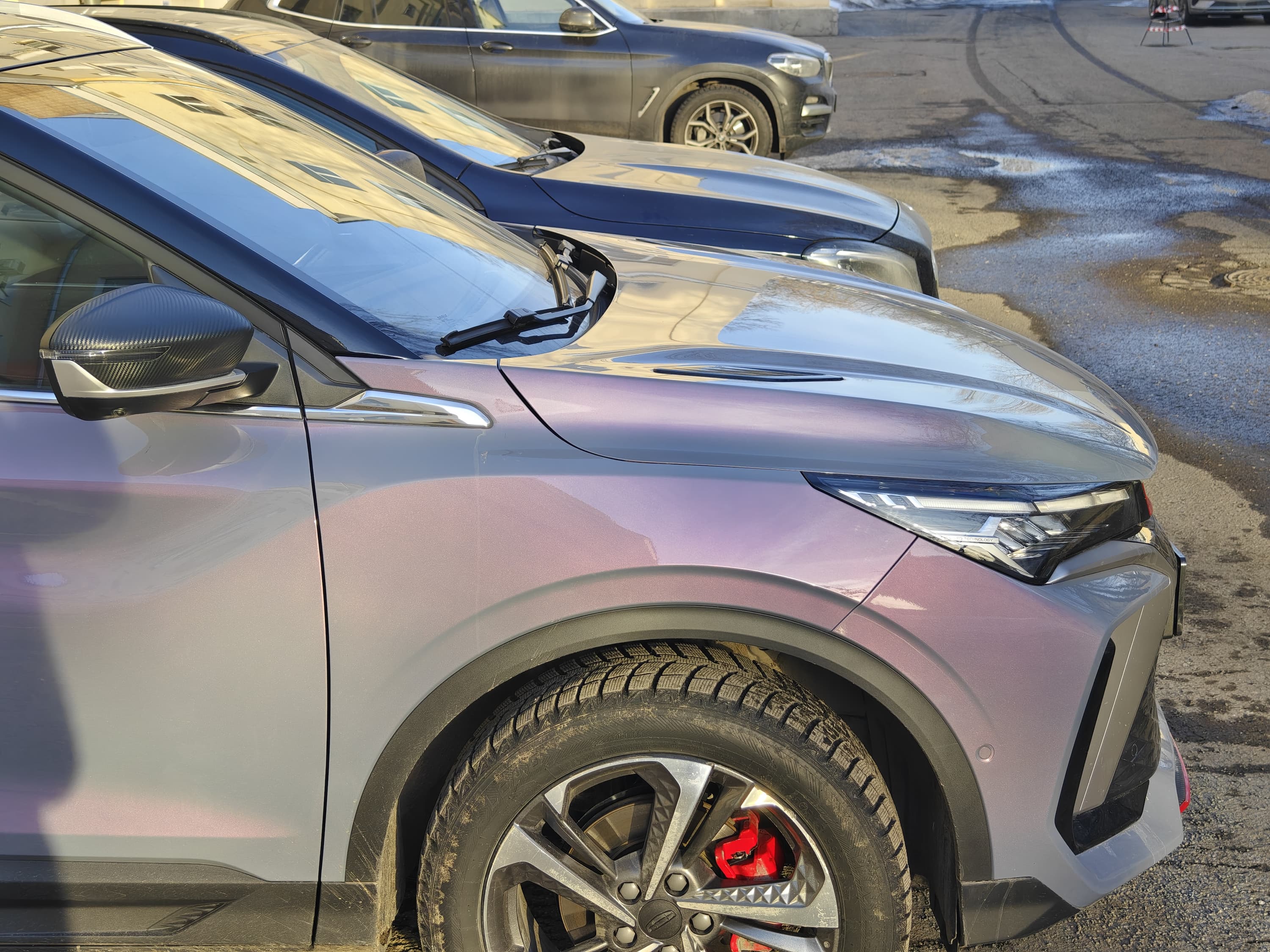 Комплектация Flagship может похвастать внешним декором (красные тормозные суппорты, черная крыша, спойлер сзади), адаптивным круиз-контролем, камерами кругового обзора, системой контроля слепых зон, беспроводной зарядкой и другими опциями. А четвертое исполнение под названием Exclusive отличается от варианта Flagship лишь цветовой гаммой: такому паркетнику положены двухцветные колеса и фирменный очень эффектный цвет «лиловый перламутр» (специалисты станций кузовного ремонта ликуют, предвидя сложность и цену подбора такой краски, в случае ремонта).