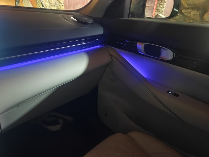 Атмосферная подсветка многоцветная, с настройкой через экран, охватывает центральную консоль, двери и пространство для ног.