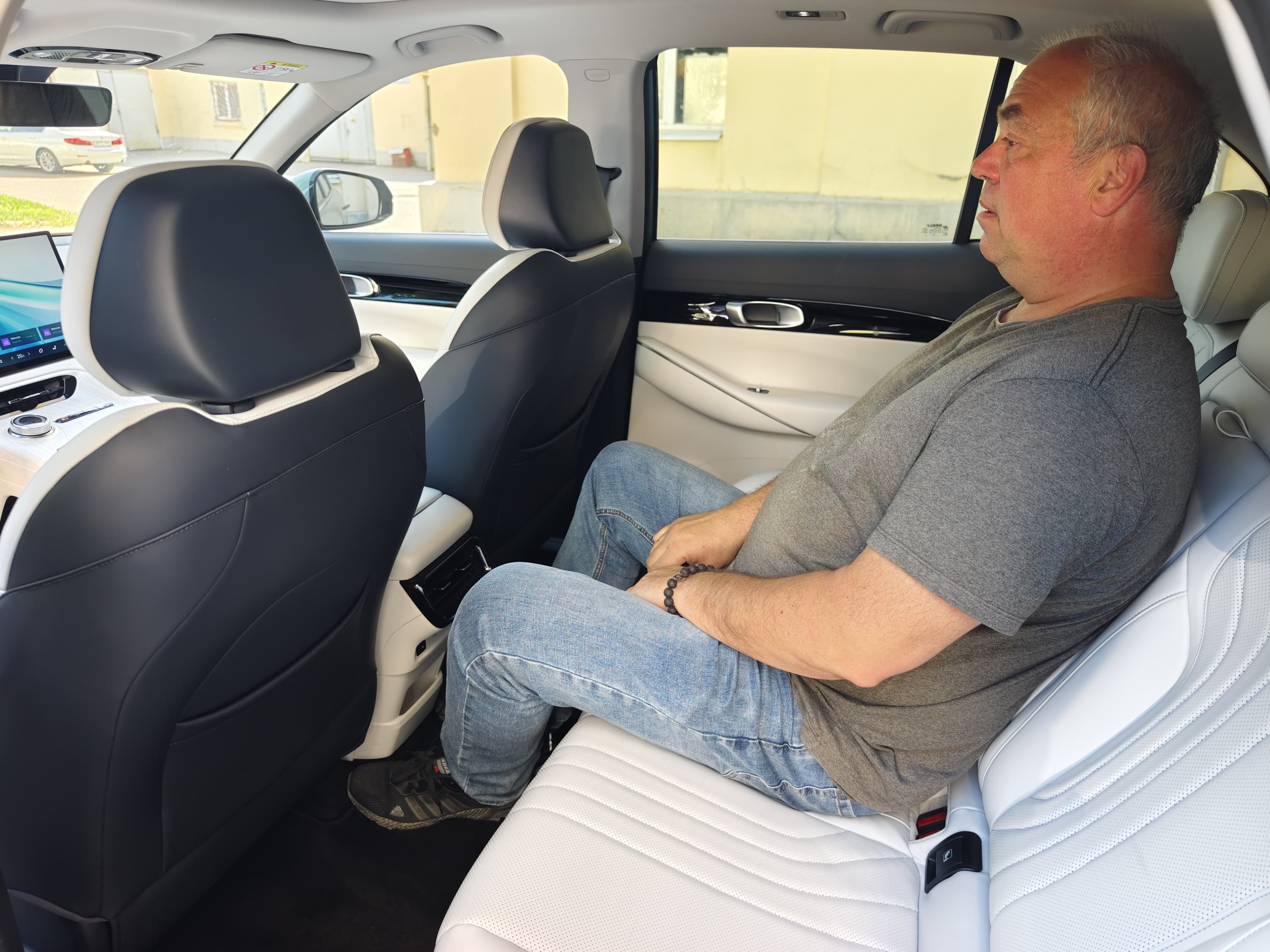 Передние сиденья Geely EX5 выделяются своей функциональностью и комфортом, особенно в топовой комплектации Max, где они предлагают широкий спектр регулировок и дополнительных опций. Сиденье водителя оснащено электрорегулировками в шести направлениях с функцией запоминания параметров для нескольких водителей. Сиденье переднего пассажира имеет электрорегулировки в четырех направлениях, а в более высокой комплектации добавляется поддержка для ног и возможность горизонтального раскладывания, превращающая его в удобное место для отдыха.