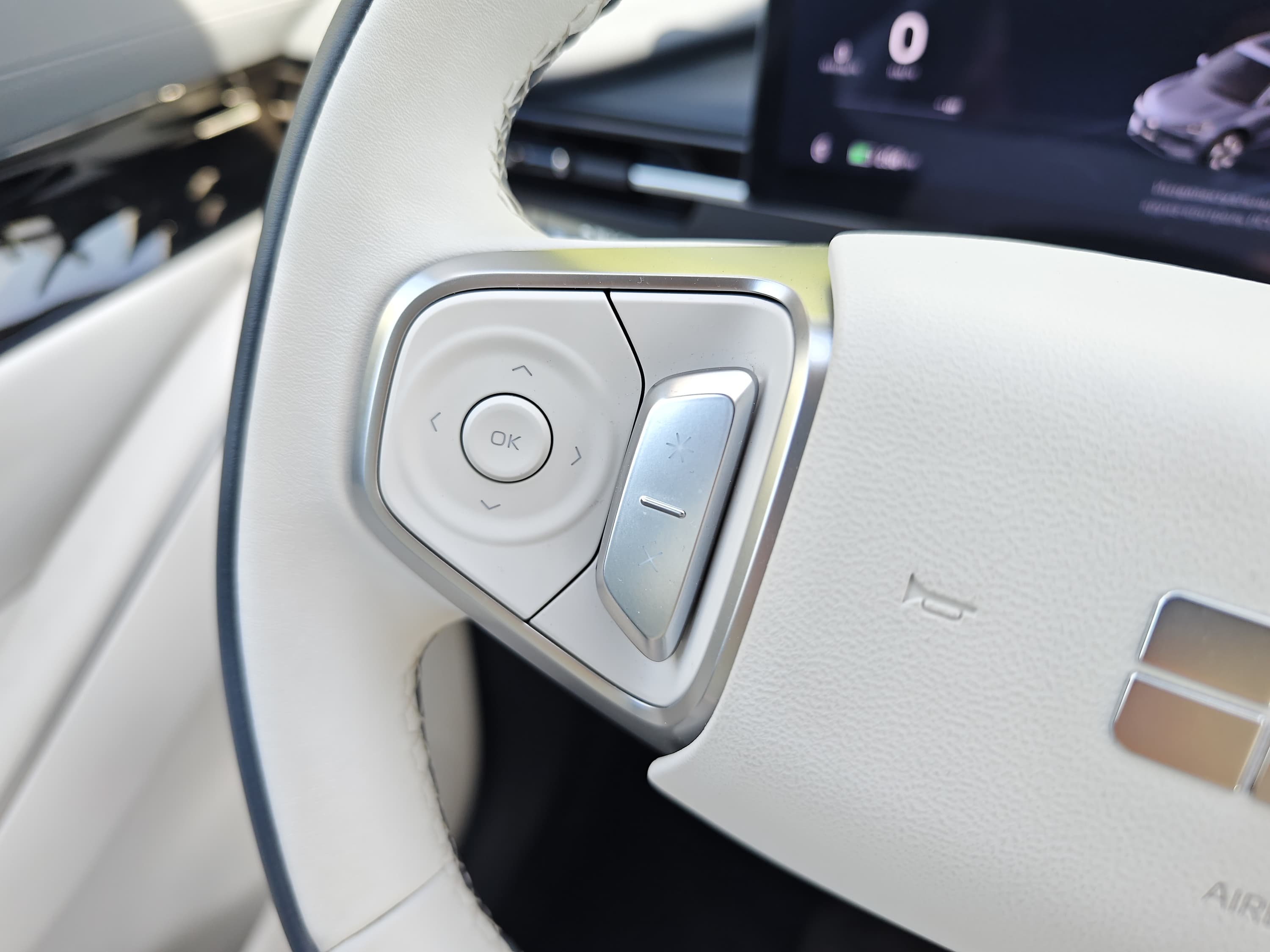 Он отделан экокожей с приятной текстурой, а кнопки на нём (для управления мультимедиа, круиз-контролем и голосовым ассистентом) расположены логично.