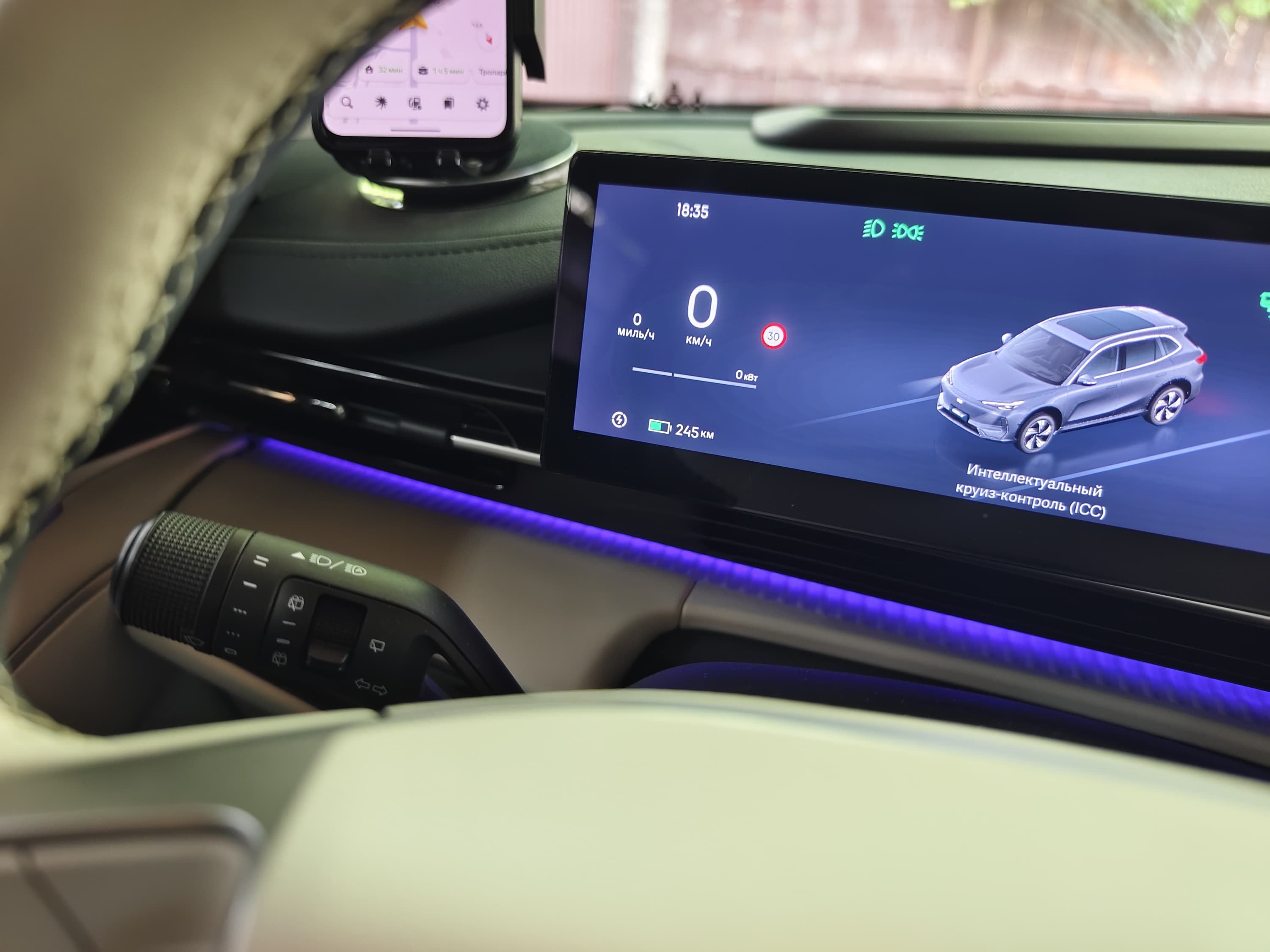 Регенеративное торможение интегрировано плавно, в настройках можно выбрать три степени (средний считается базовым). На извилистых дорогах EX5 демонстрирует стабильность, хотя остроты рулевого управления не хватает.