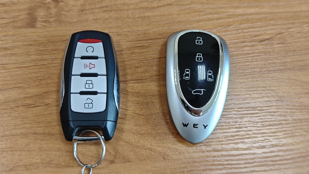 Ключ для Wey 80 имеет достаточно обычную округлую форму, удобно помещается в кармане, хорошо лежит в руке, но на ощупь кнопки распознать сложно.