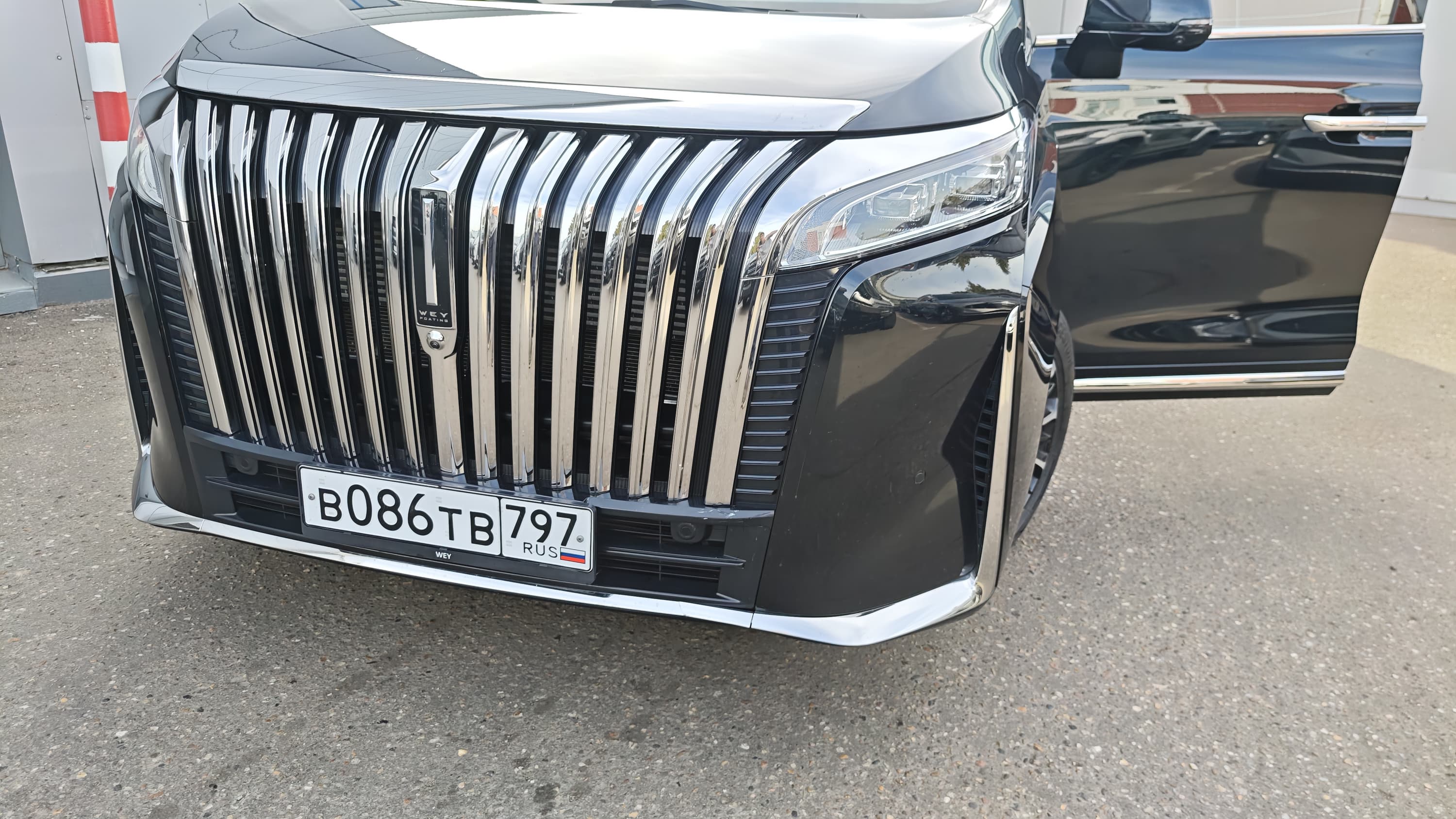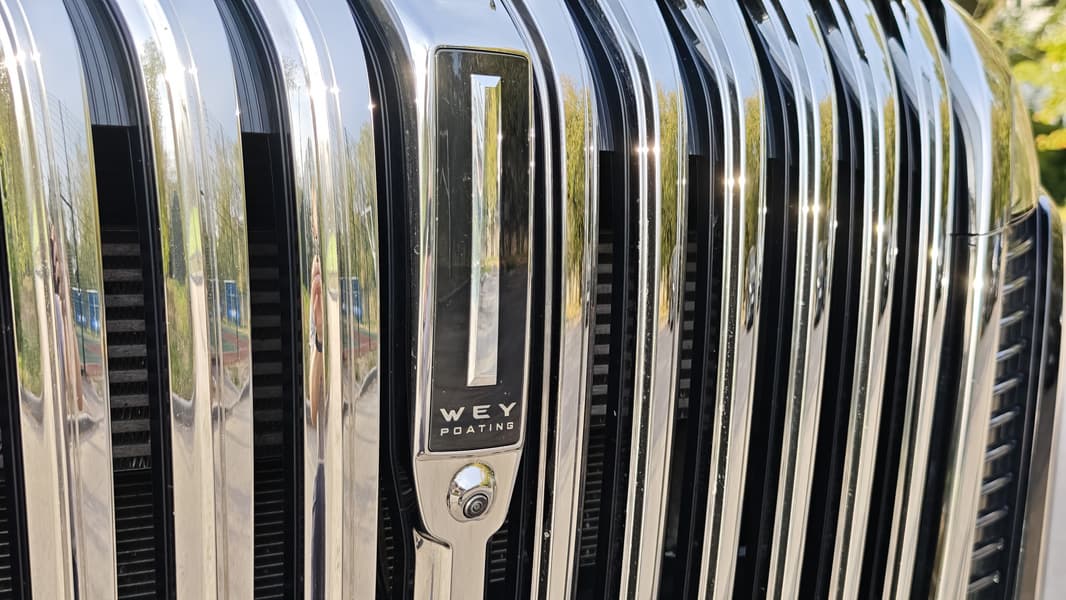 Решётка радиатора у автомобиля массивная, вертикально ориентированная, с широкими хромированными ламелями, напоминающими водопад (дизайнерская черта бренда Wey). Она доминирует в передней части, создавая ощущение монументальности и престижности. Роскоши добавляет блеск хромированных элементов.