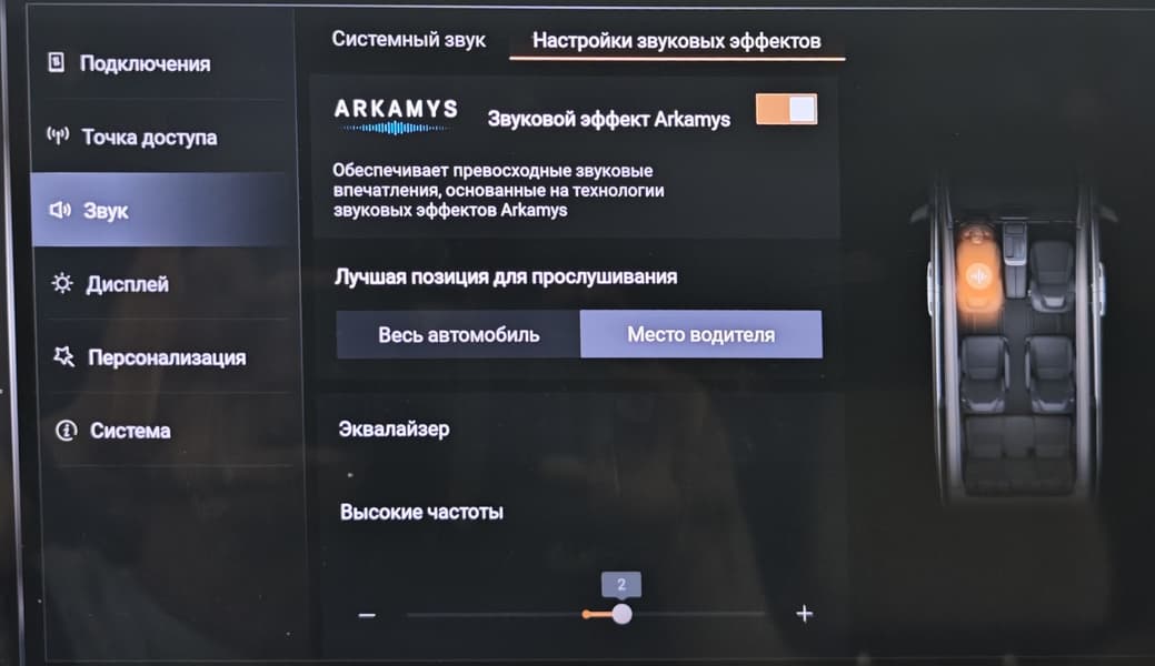 Чтобы в должной мере насладиться качеством звучания можно самостоятельно поработать с настройками эквалайзера и добиться наиболее оптимального для себя воспроизведения любимых композиций (или любимых композиций самого важного пассажира).