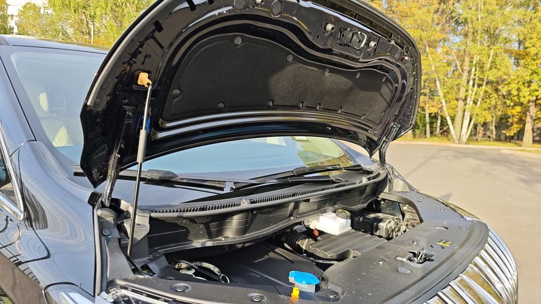 Разъём питает тяговую батарею марки Svolt (также подразделение Great Wall Motor), которая расположена внутри колесной базы под полом. Она, как заверяют представители компании, ударопрочная и всячески защищённая. Ёмкость приличная: 37,96 кВт⋅ч в «короткой» версии Premium и 44,28 кВт⋅ч в Business Lounge. Для сравнения: у наиболее близкого конкурента – Voyah Dream — 25,6 кВт⋅ч, или 43 кВт⋅ч в версии Long Range.