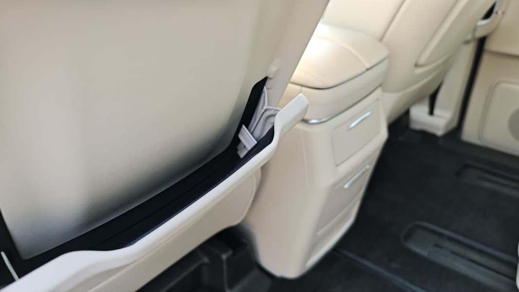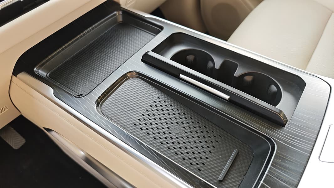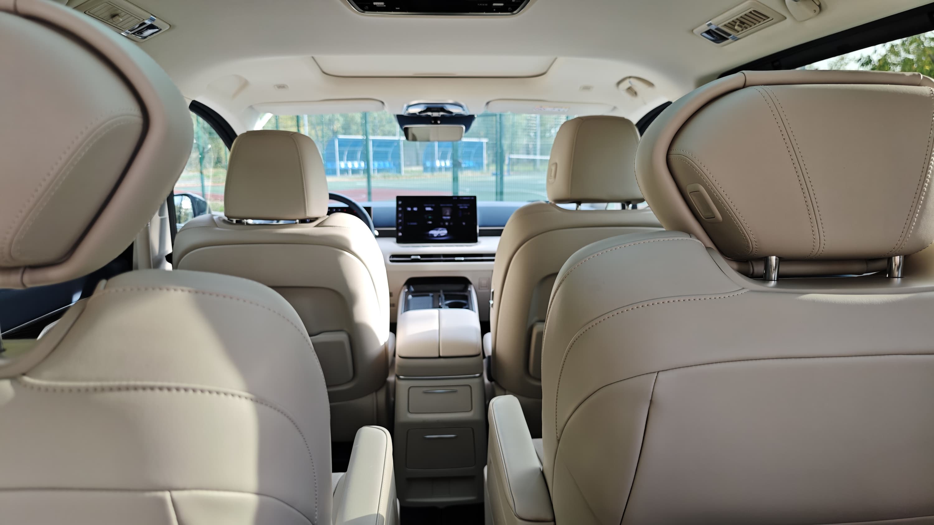 В максимальной комплектации для задних пассажиров предусмотрены отдельные экраны, встроенные в подголовники передних сидений. В нашем же случае даже карманы для смартфонов в капитанских креслах на втором ряду были лишены беспроводной зарядки для телефонов (да-да, для китайских автомобилей премиум-класса это уже можно считать заметным минусом).