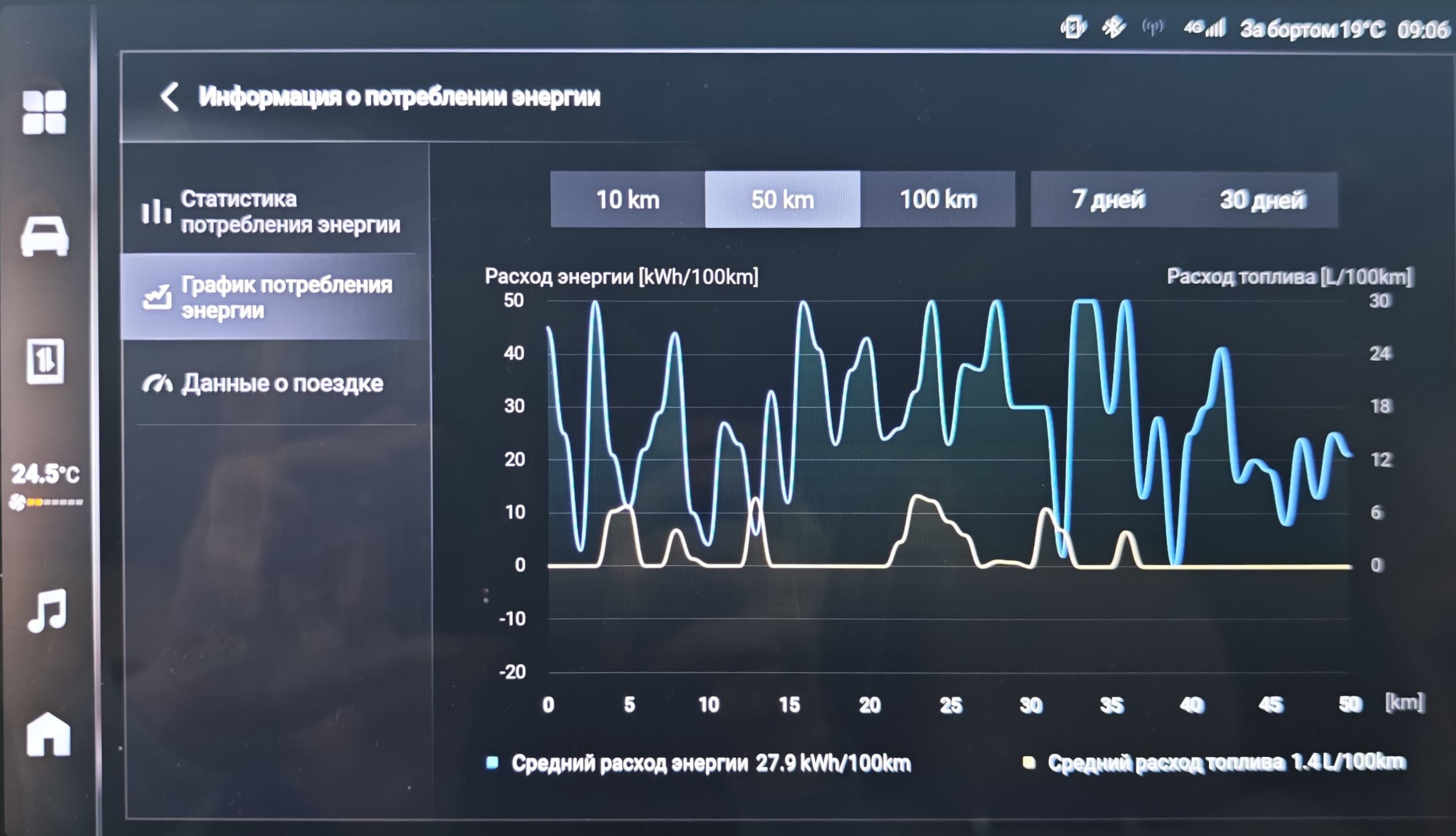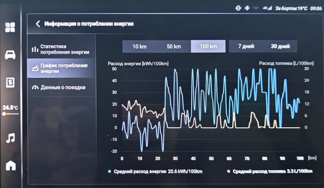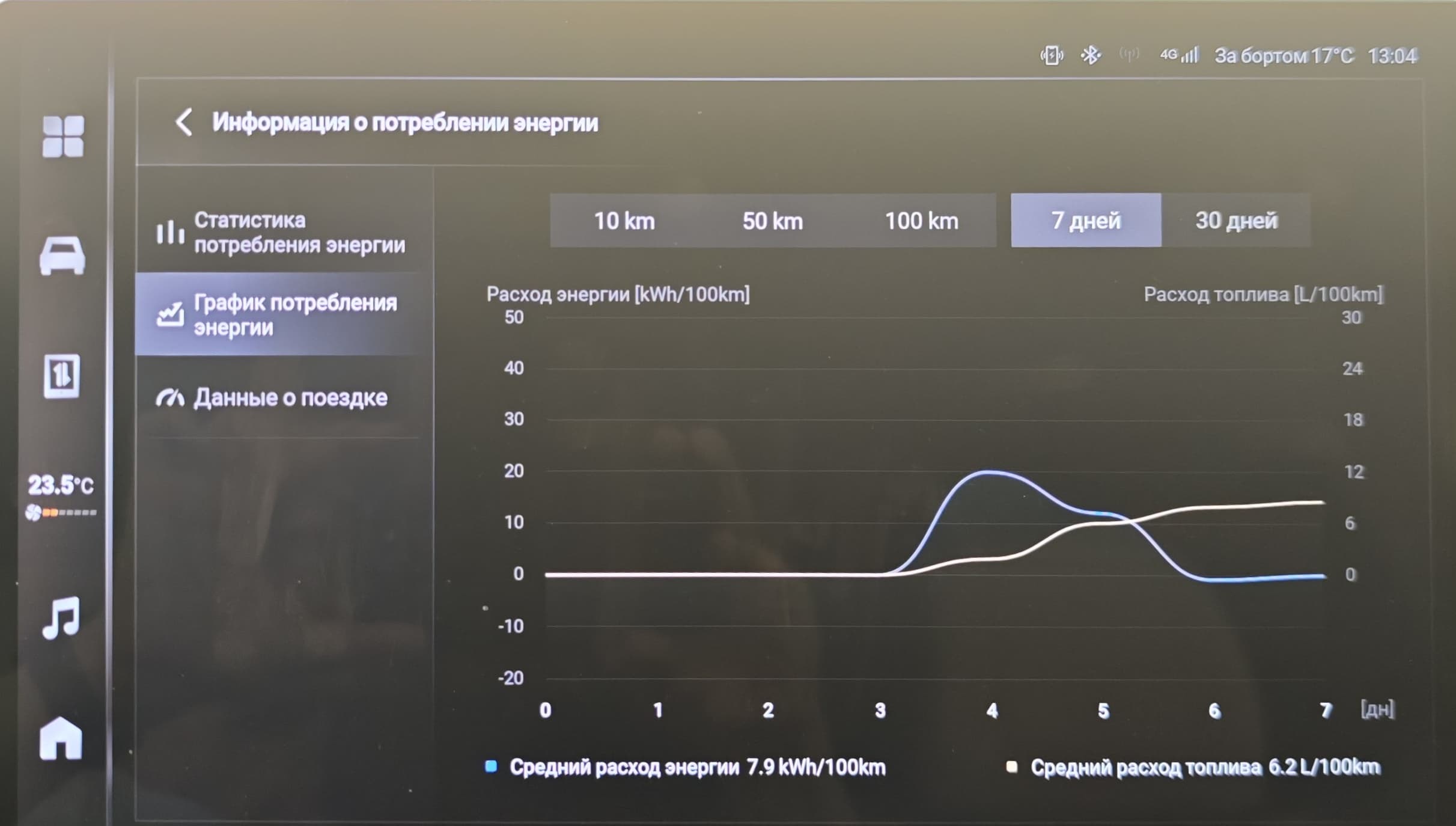 При равномерном движении на трассах с регулярной рекуперацией увидеть на экране расход менее одного литра – вполне реально.