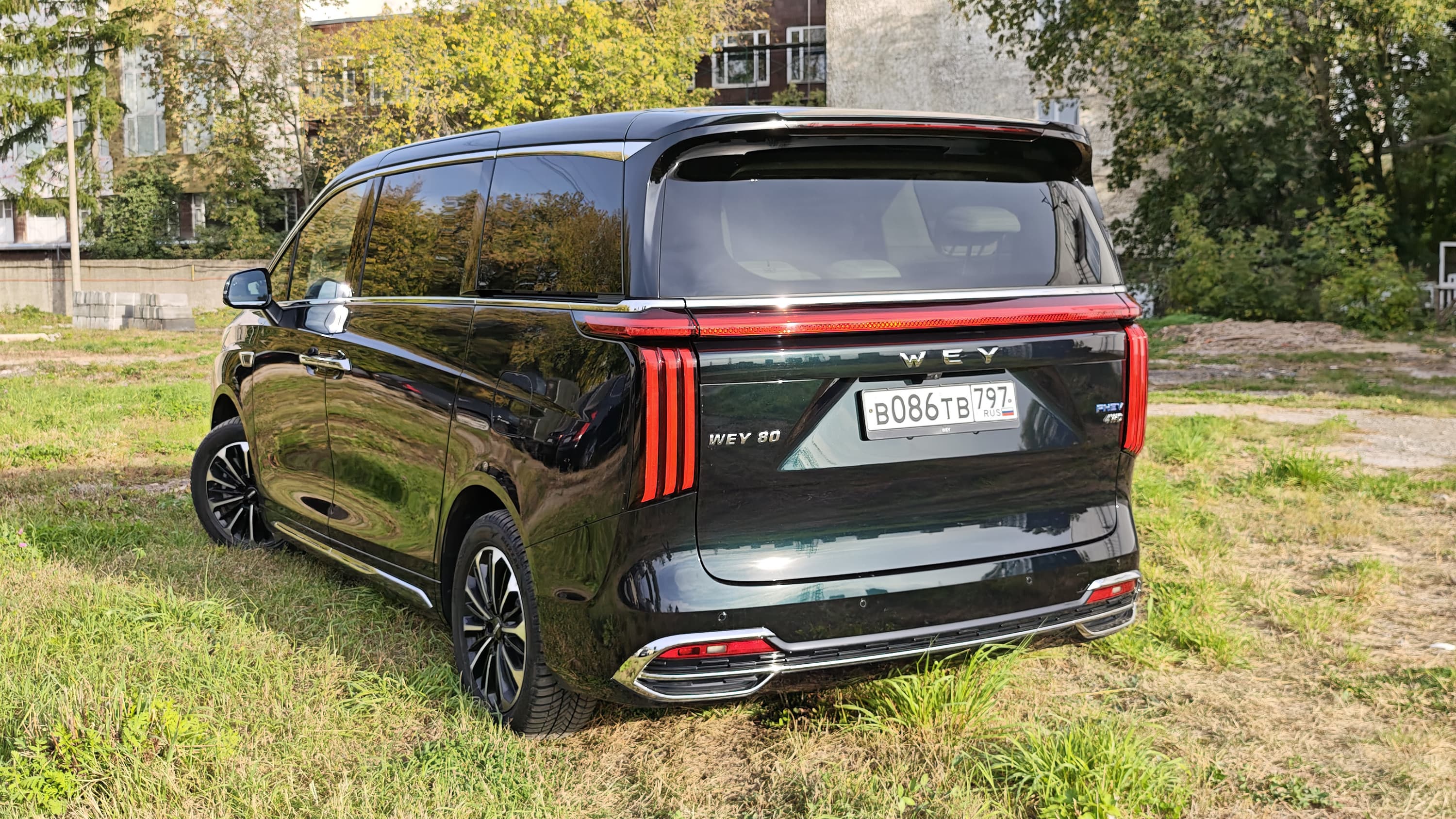 Внутри Wey 80 предлагает роскошный салон с массажными и вентилируемыми креслами, потолком с эффектом «звездного неба», холодильником (в Business Lounge-версии) и аудиосистемой с 20 динамиками, обеспечивая высочайший комфорт, особенно на дальних поездках. Шумоизоляция превосходна, а минивэн уверенно справляется с городскими неровностями и скоростными трассами. Однако есть недостатки: эргономика страдает из-за чрезмерной зависимости от сенсорного экрана без физических кнопок для быстрого доступа. Низкий клиренс в 155 мм ограничивает внедорожные возможности, а зимние шины создают заметный шум. Сиденья не складываются в ровный пол, что ограничивает гибкость багажника, а дизайн кому-то может показаться непривлекательным. Расход топлива достигает 10–11 л/100 км без подзарядки, что может отпугнуть некоторых покупателей.