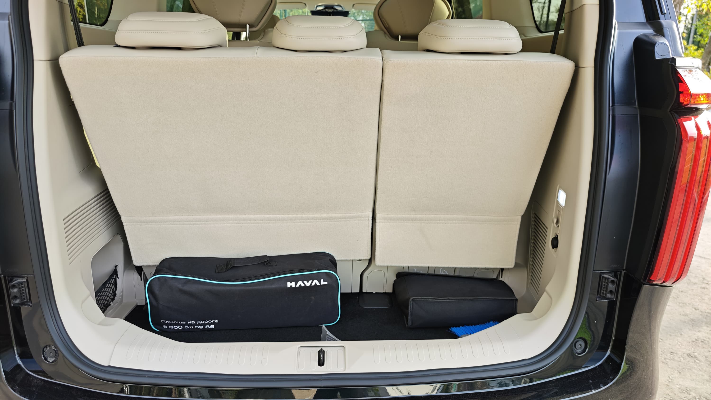 При сложенных сиденьях третьего ряда багажник превращается в неплохой по объёму грузовой отсек — более 1725 литров, отлично подходит для семейных поездок или деловых нужд.
