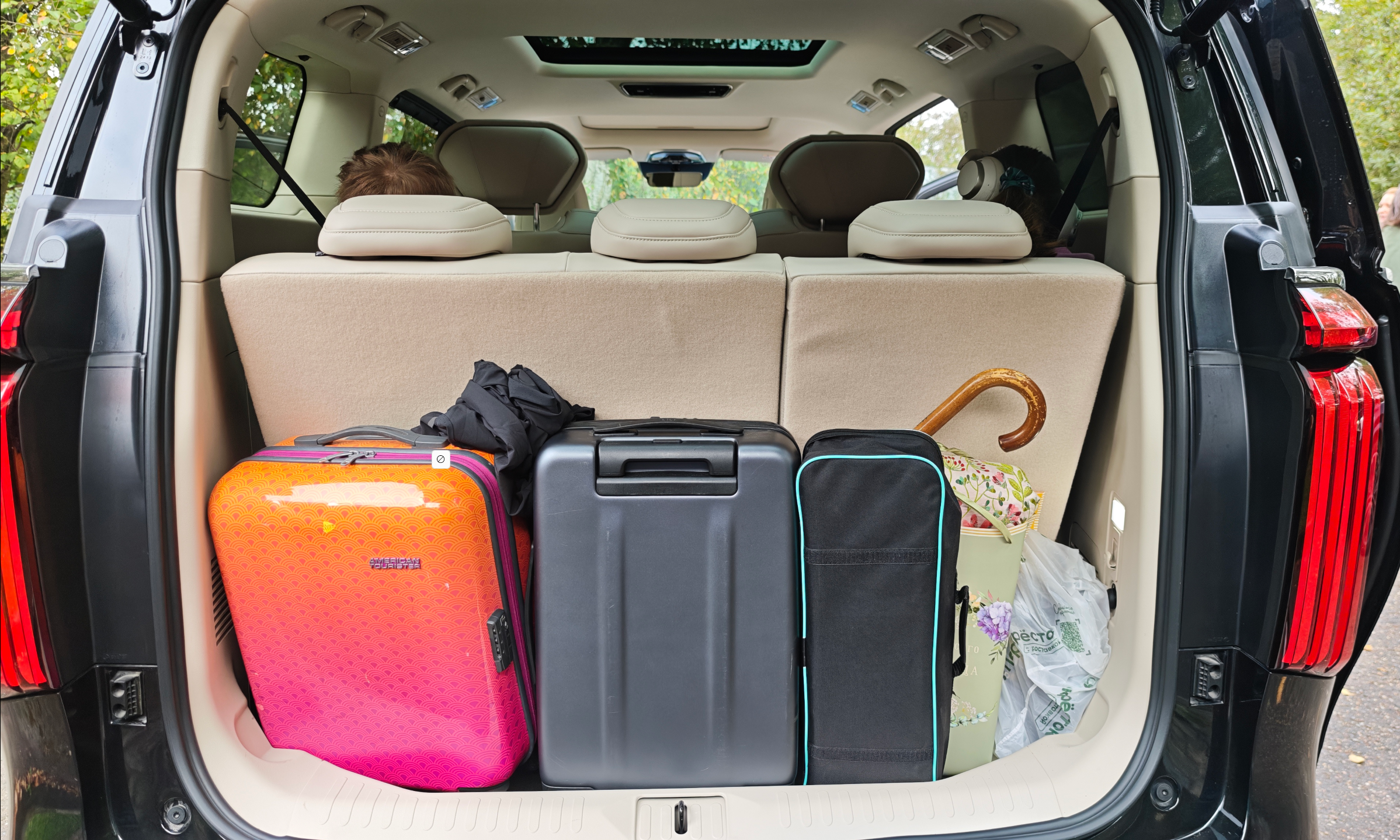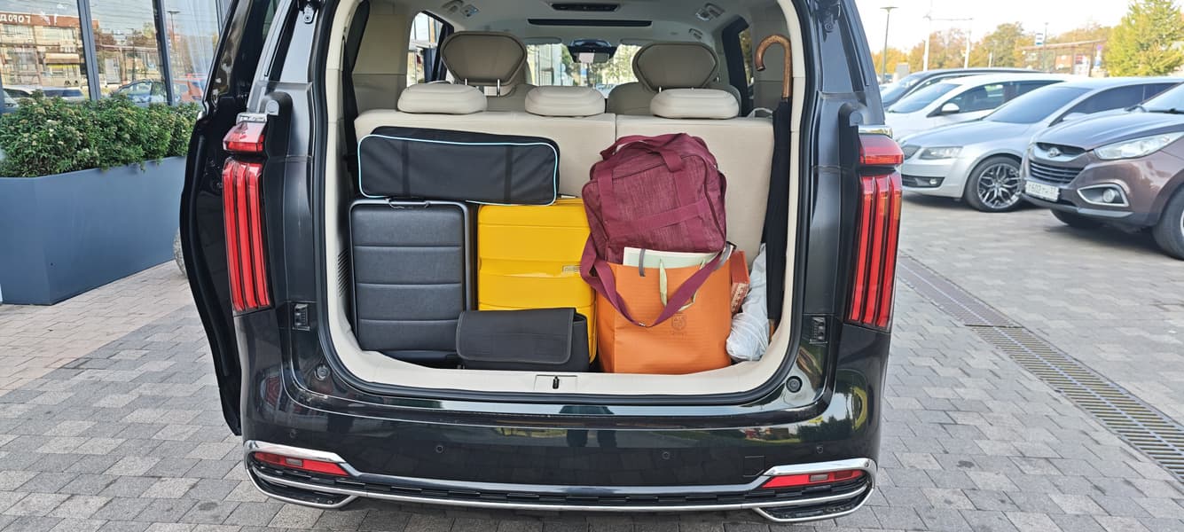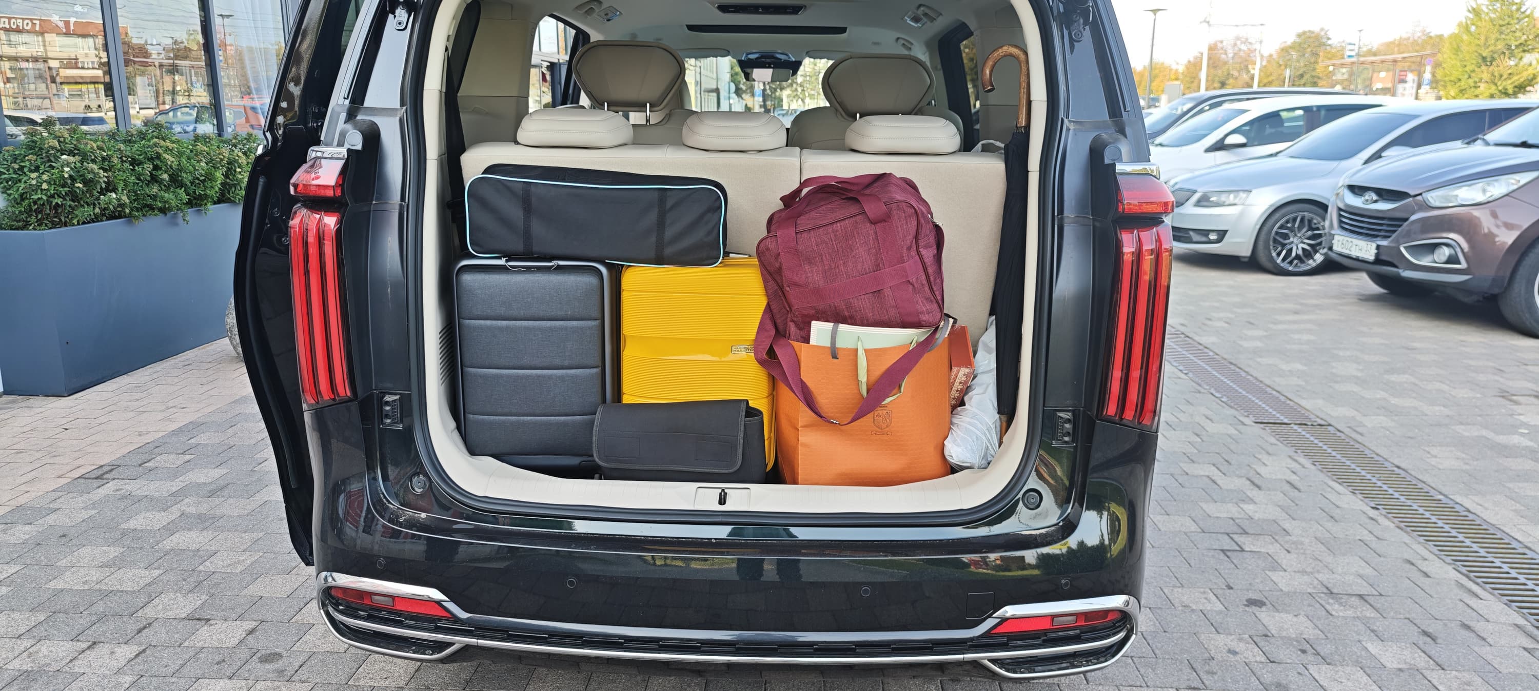 Автомобиль вряд ли подходит для ситуаций, когда надо встретить в аэропорте 5-6 человек с полноценным багажом. В режиме, когда все сидят с максимальным комфортом в багажник влезет пара чемоданов из ручной клади и ещё пара мягких сумок.