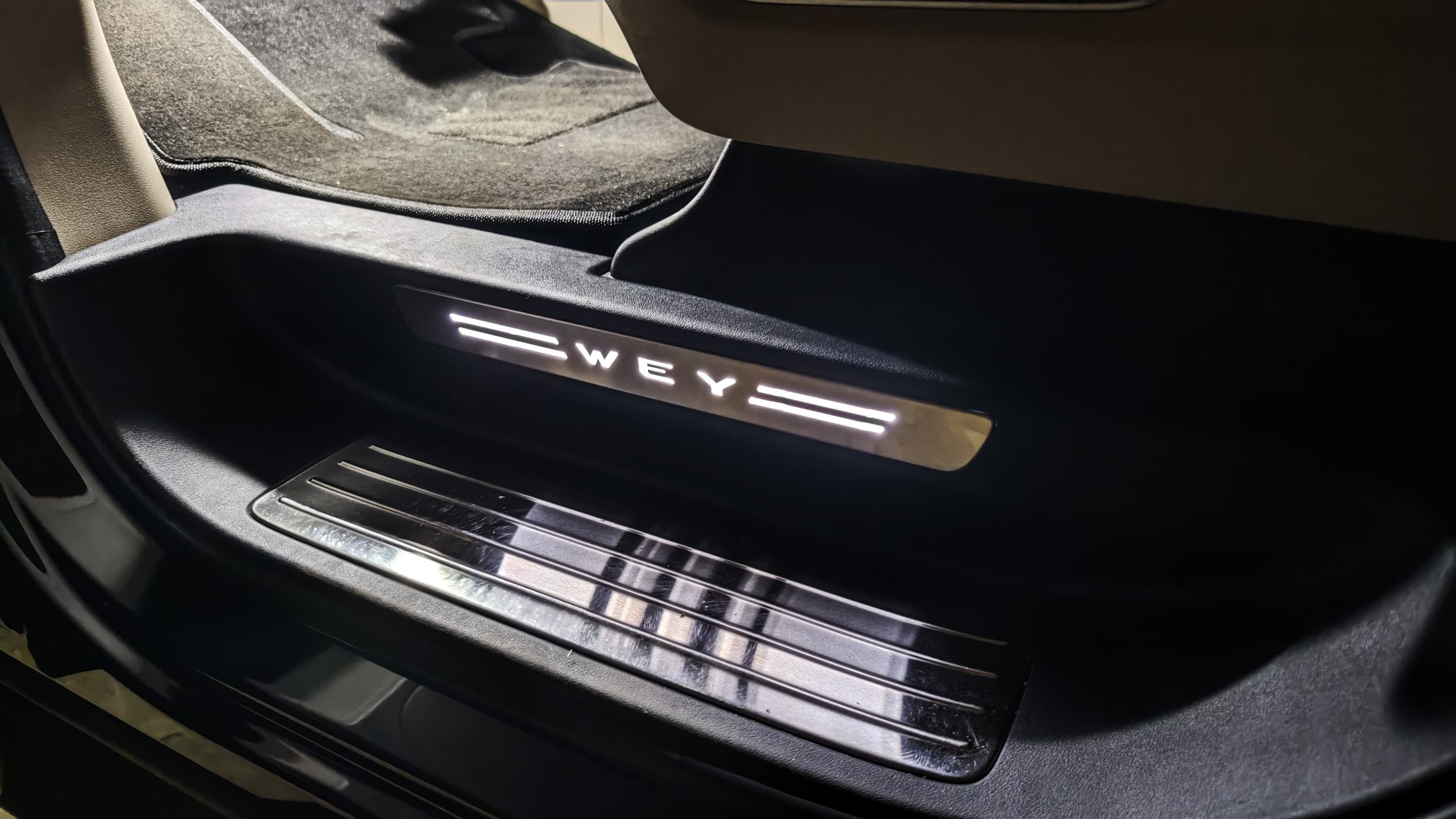 Хромированные элементы обильно используются на решётке, оконных линиях, дверных ручках и задней части, создавая ощущение дороговизны, как у Wey 05, но с большим акцентом на бизнес-функциональность.