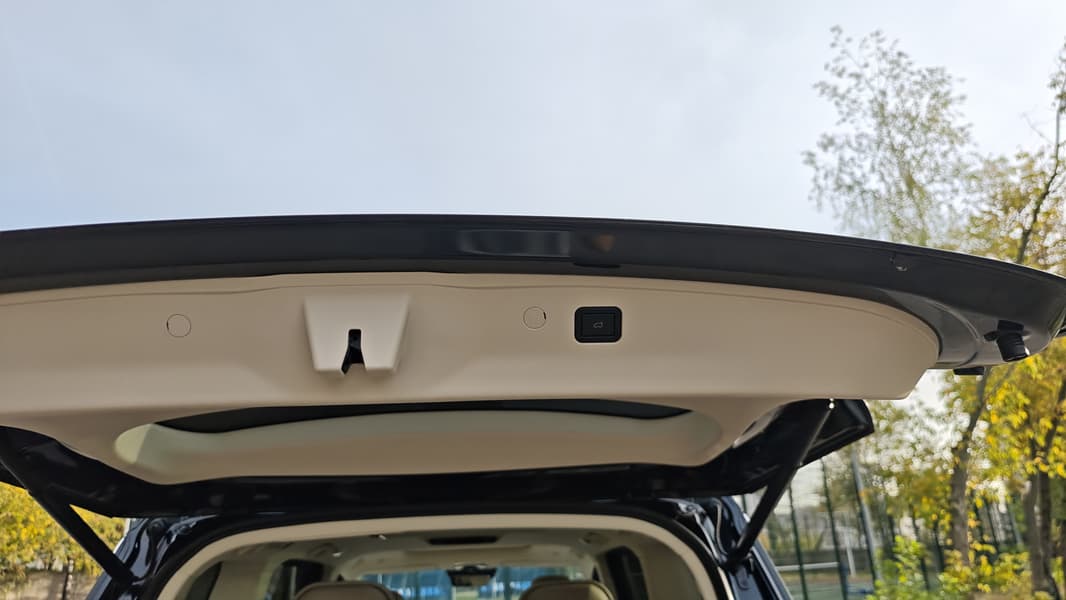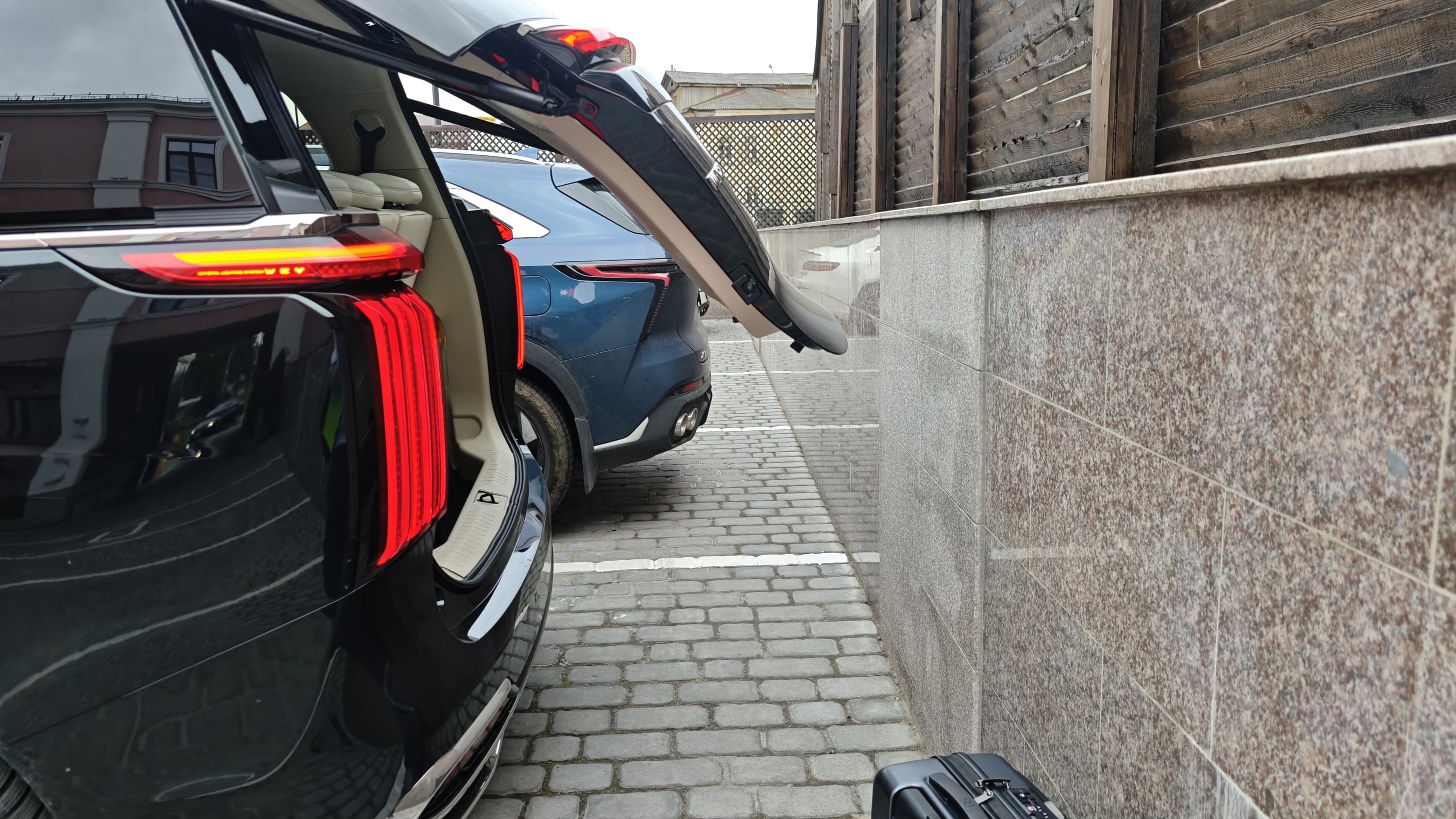Задняя дверь багажника также электрифицирована, с возможностью регулировки высоты подъёма, чтобы не задеть низкий потолок парковки.