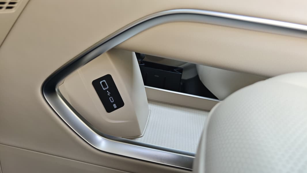 Он не открывается так эффектно, как у Zeekr, но разъёмы продуманно подсвечиваются светодиодной лампой, что весьма удобно в тёмное время суток.