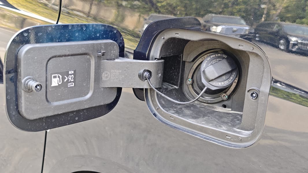 После того, как подключился ДВС и начался расход топлива, 58 литров топливного бака автомобиль прогнозирует потратить за 700 км. Лить можно 92-ой бензин. Но дилер рекомендует использовать всё же 95-ый.