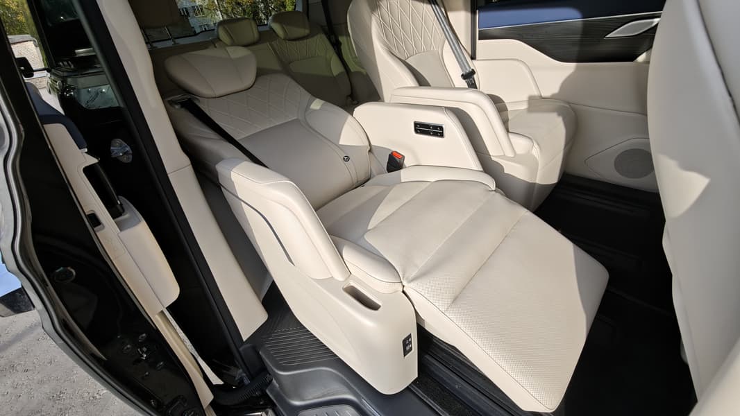В топовой версии второй и третий ряды оснащены капитанскими креслами, которые больше напоминают авиационные сиденья бизнес-класса.