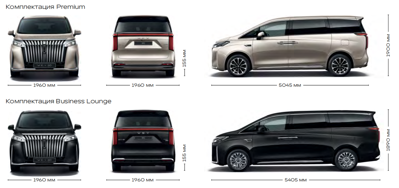 Wey 80 предлагает конфигурацию на 6 или 7 мест в «базовой» версим Premium и удлинённой Business, соответственно. Колёсная база — 3085 мм (в длинной версии — до 3275 мм).