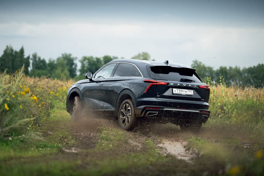 Пылить по грунту, уподобляясь раллийному гонщику, за рулем Haval F7, наверное, лестно, вот только связь колес с рулем получается не самая натуральная — и здесь вновь вопросы к электроусилителю. В полноприводной модификации добавляются два режима вождения: «Офф-роуд» и «Песок». Первый принудительно поставляет больше момента на заднюю ось. Следует понимать, что это не жесткая блокировка, и в дебри заезжать глупо, однако муфта и пакет фрикционов с электронасосом от BorgWarner работают активно. «Песок» — это когда колеса проворачиваются рывками, как того требует песчаная поверхность, чтобы не закопаться.