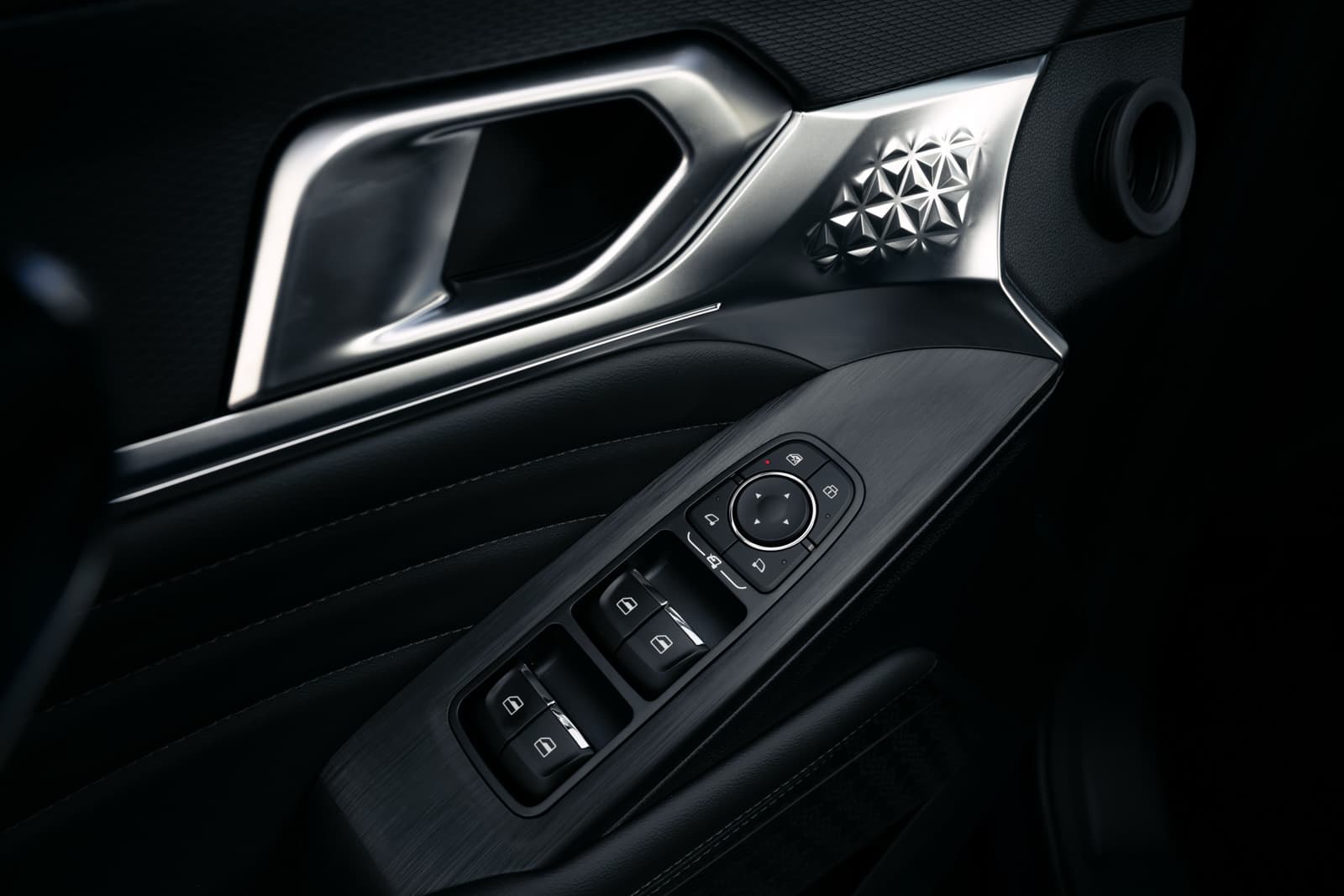 Прибавка получилась не только в длине, но и по ширине (1890 мм), а вот в росте (1675 мм) новый F7 уступил «прародителю», но того требовал свежий дизайн, который, как видно на фотографиях, не имеет с прежней версией ничего общего. У новичка модные выдвижные ручки дверей, решетка радиатора в виде большого сплошного щита с верхней линией светодиодных огней.