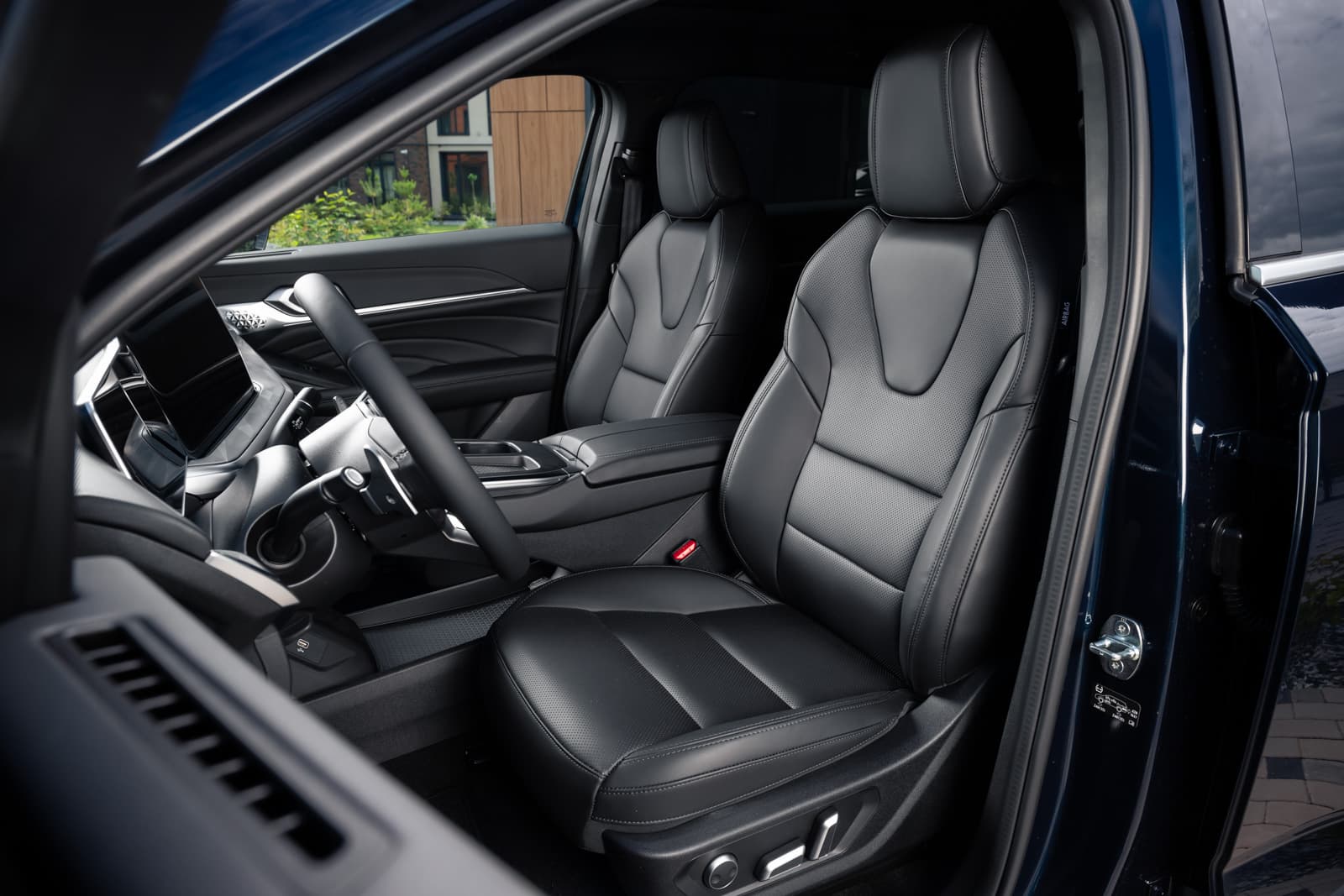 В топовой версии у сиденья есть память, вентиляция (она перекочевала с прежней комплектации Premium) и т. н. «приветственное положение», это когда при открывании двери кресло отодвигается назад, упрощая процесс посадки. А еще в силу того, что иной стала форма кузова, капот больше не выпирает и не «пыжится», «съедая» обзорность, и это сразу приятно бросается в глаза.