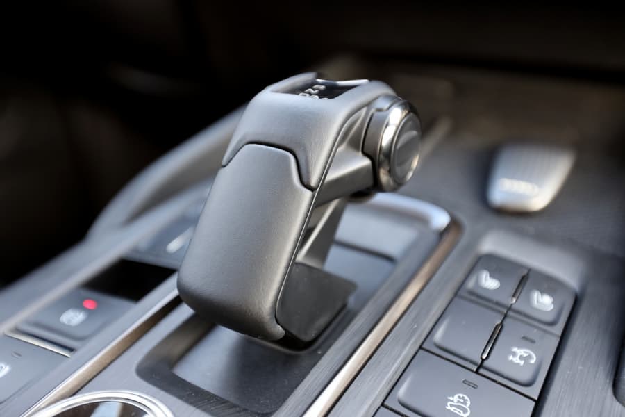При проектировании селектора АКПП за основу был взят дизайн и эргономика рычага управления двигателя современных самолетов. Перед ним — быстрая беспроводная зарядка на 50 Вт с охлаждением. В центральном тоннеле — два USB-порта, на заднем тоннеле - еще два USB-разъема, это уже для пассажиров второго ряда. Дополнительно доступны розетки 12 В и розетка 220 В в багажнике. «Поворотники» — не фиксированные, как когда-то на BMW, поэтому при их использовании зачастую приходится «ловить» момент, который возвращает их на исходную позицию.