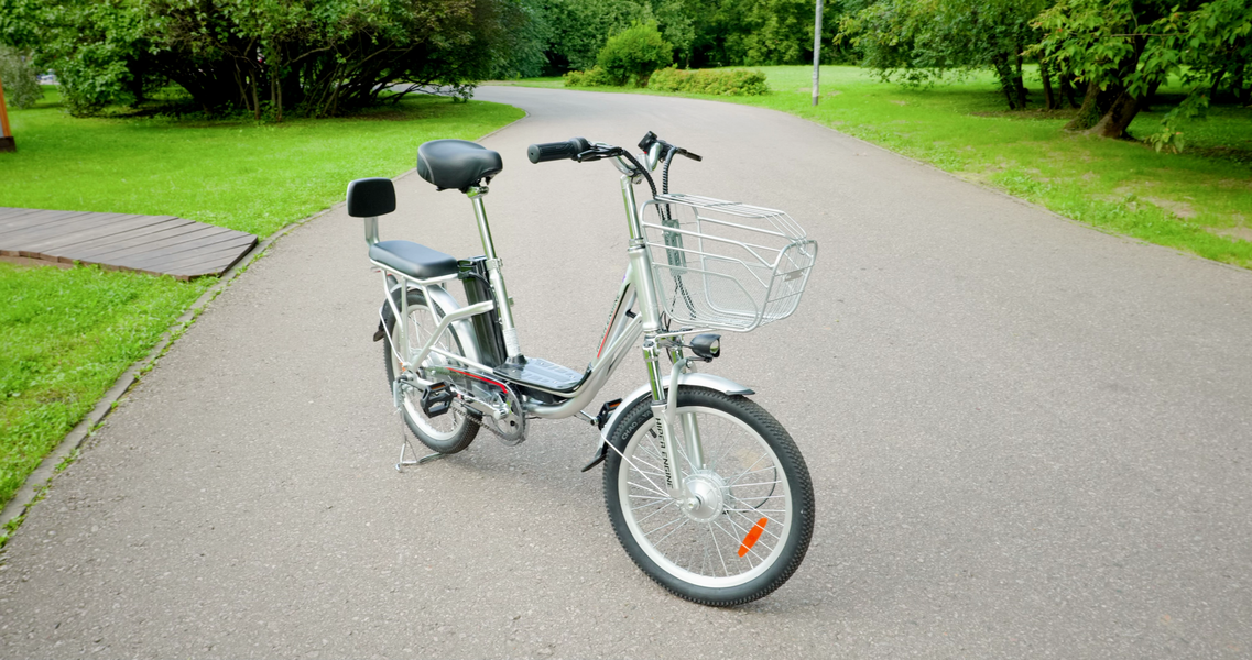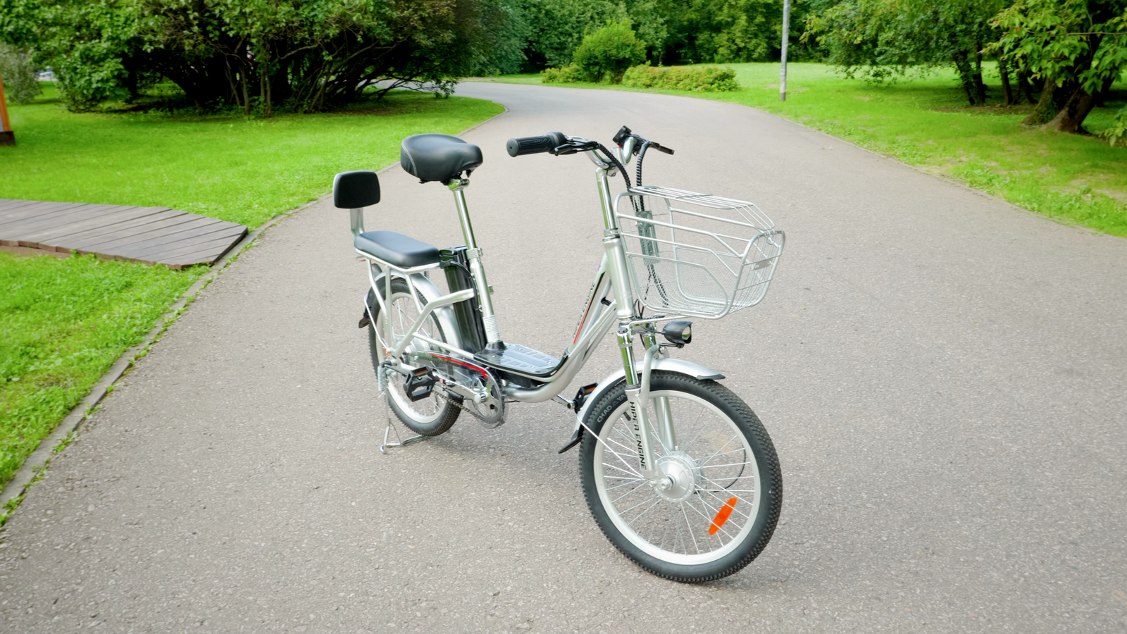 Что в итоге. Велосипед очень тяжелый, это главный минус. Но поднимать его в квартиру не обязательно, потому что аккумулятор вытаскивается, а заднее колесо блокируется. Дальность езды на одном моторе без помощи ног не очень большая, но приемлемая для города и пригорода. А с «ножной тягой» расстояние заметно увеличивается. Мощности мотора достаточно для езды на скорости 30 км/ч. И формально это мопед, и ездить ему нужно по дорогам, а не по тротуарам. Есть корзинка спереди и сиденье для пассажира или коробки сзади. Есть всё необходимое оснащение: фонарь, катафоты.