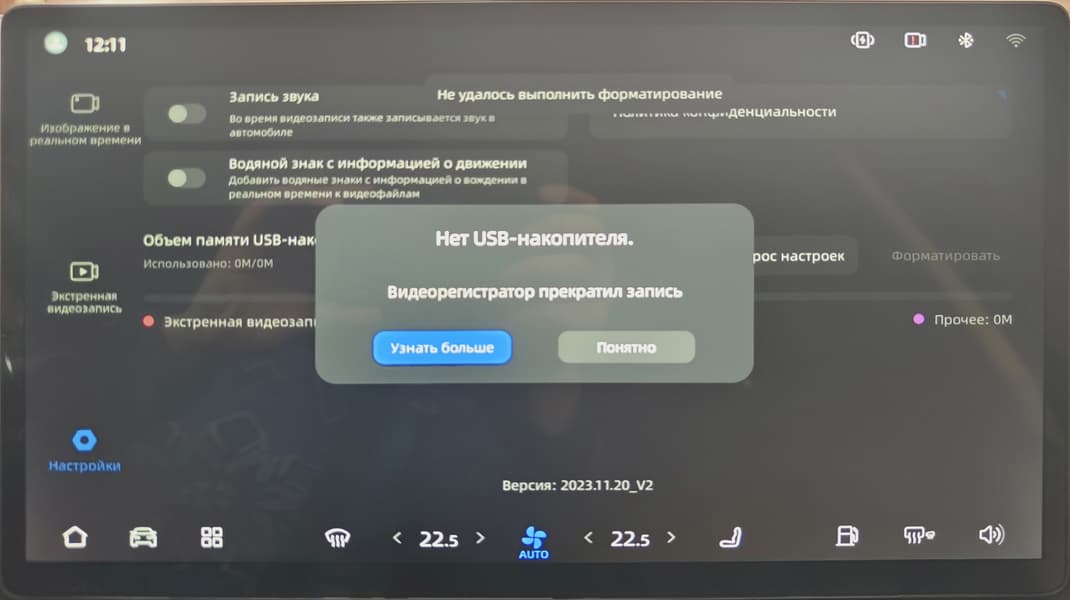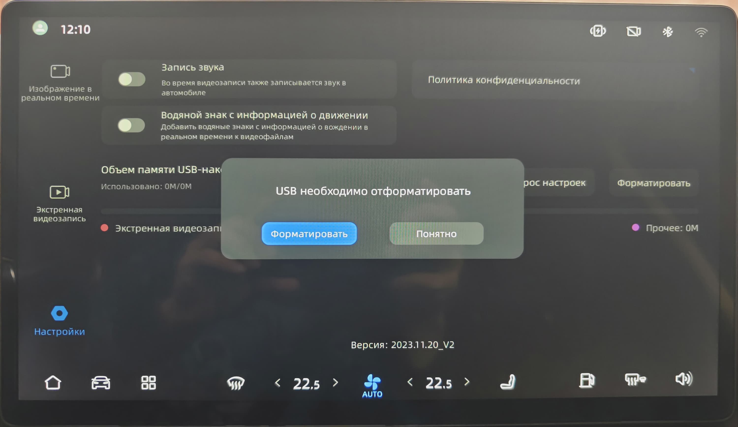 Бортовой компьютер весьма придирчив к USB-носителям и у нас подошёл лишь наиболее простой USB 2.0 накопитель, тогда как два быстрых и ёмких USB 3.0 автомобиль форматировать отказывался.