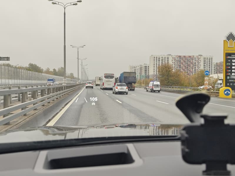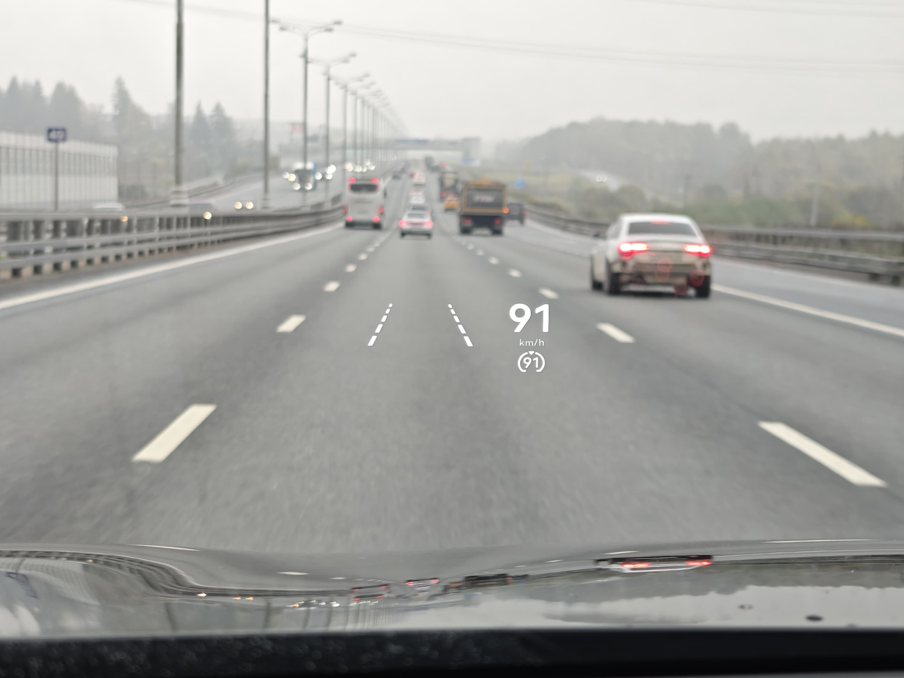 Проекционный экран заслуживает отдельных похвал. Изображение на лобовом стекле чёткое, аккуратное и совершенно не мешает обзору.