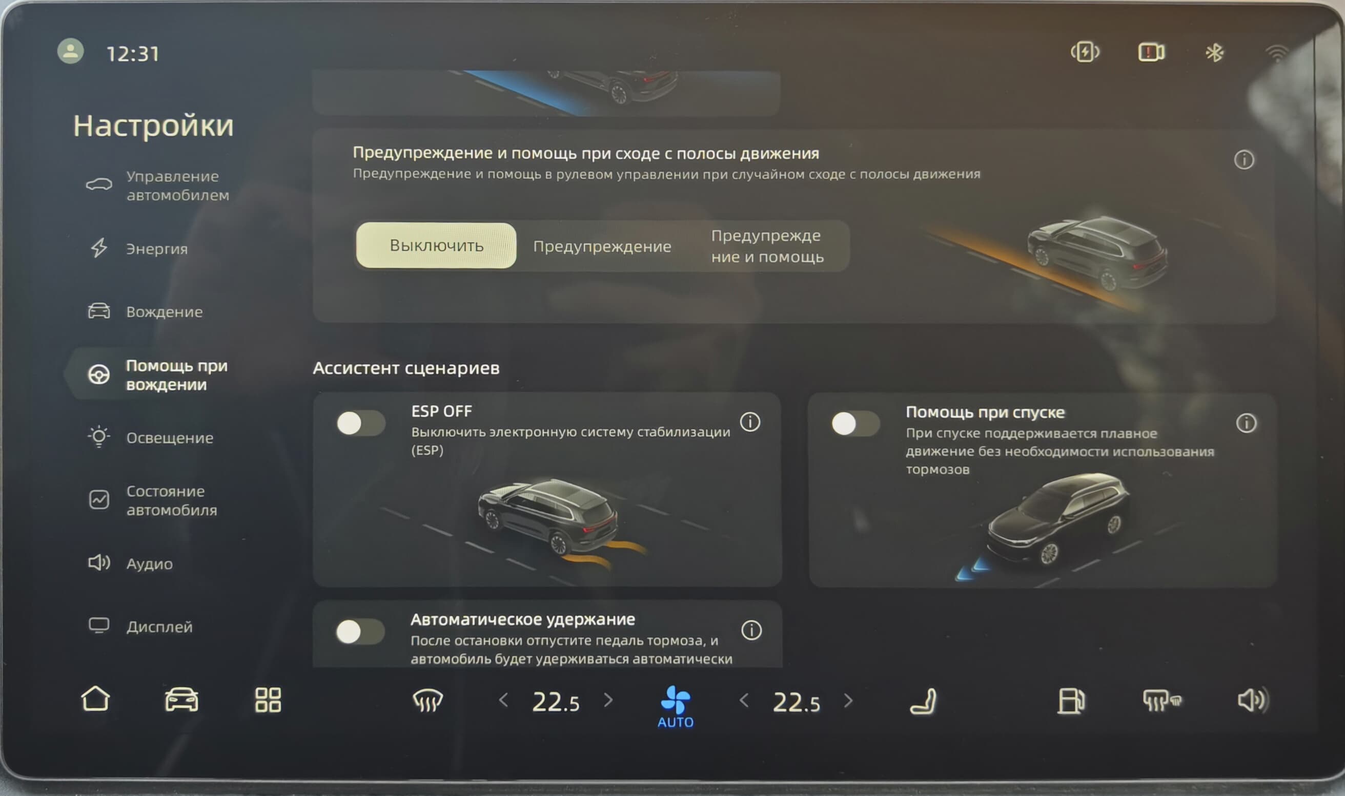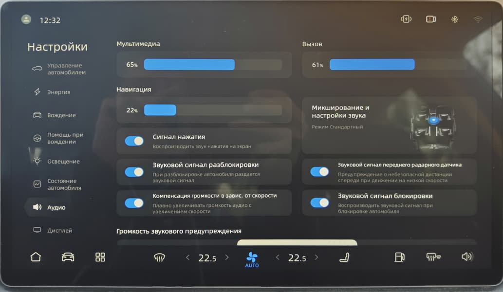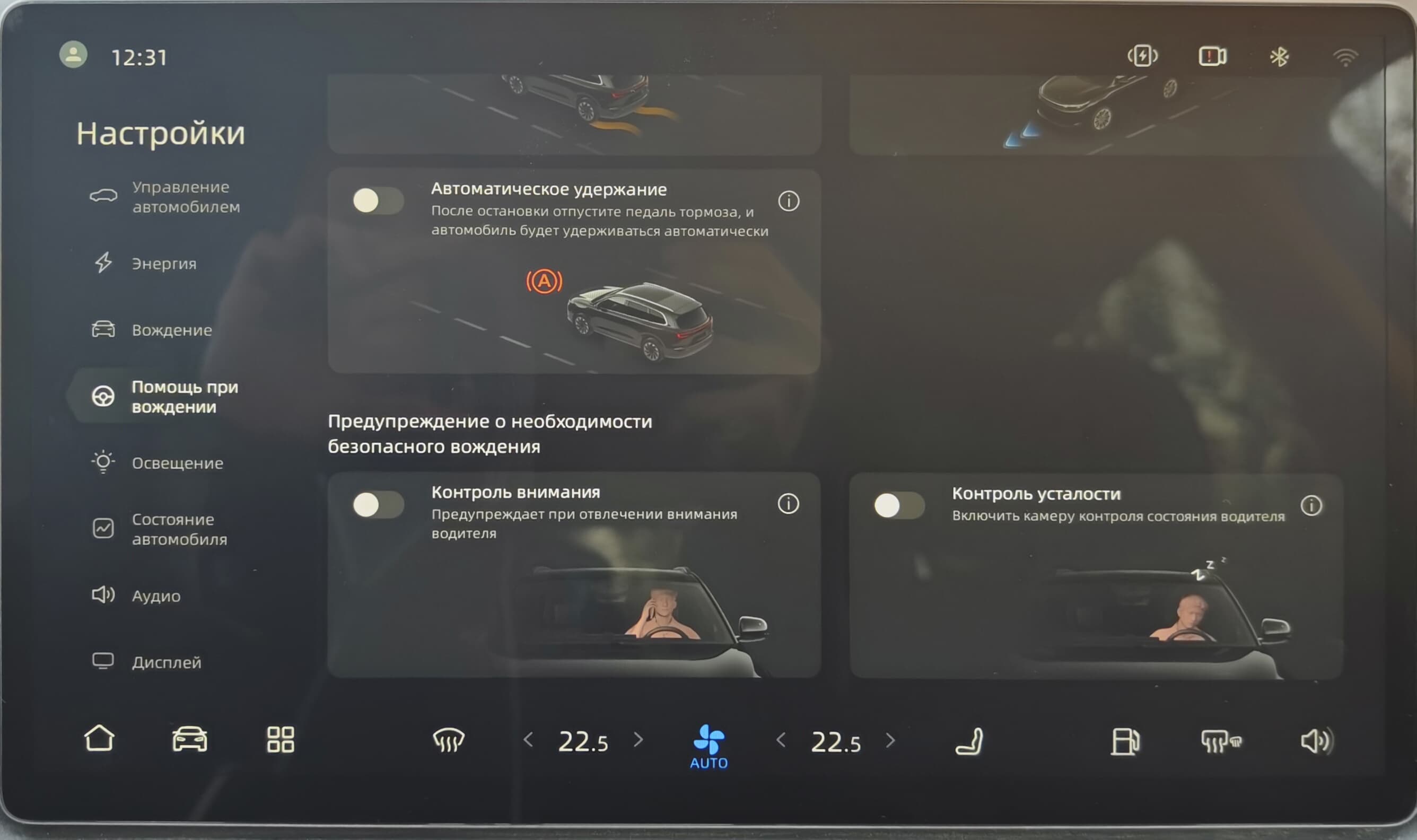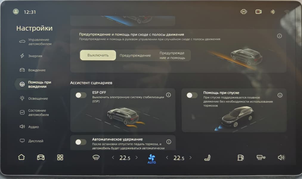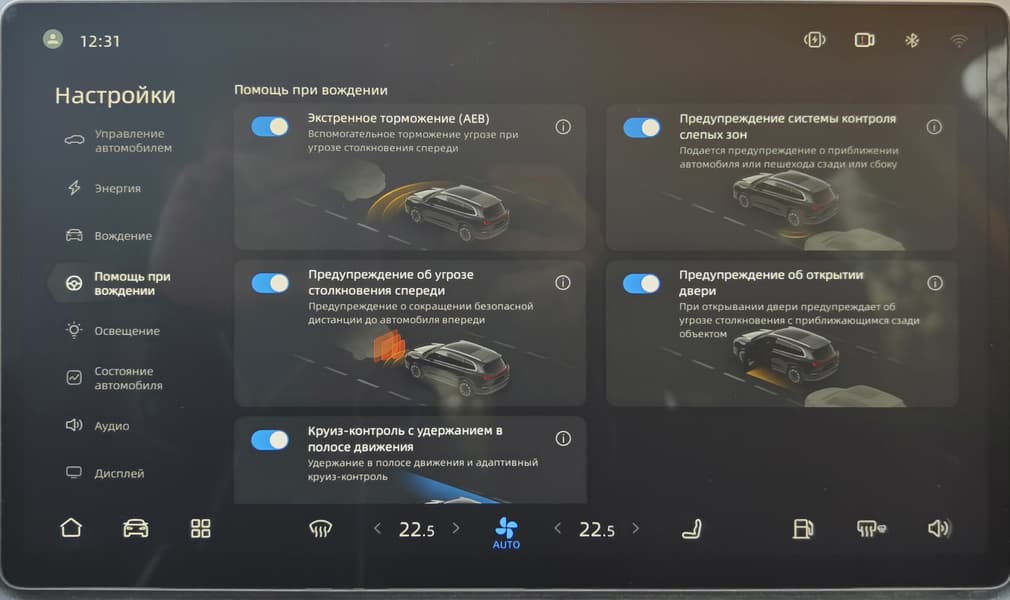 Все настройки систем безопасности также осуществляются через экран мультимедиа-системы.