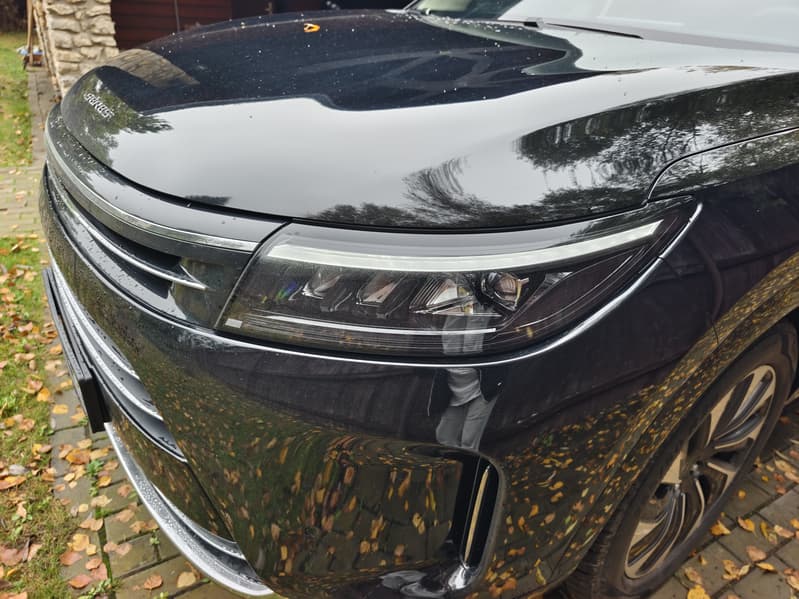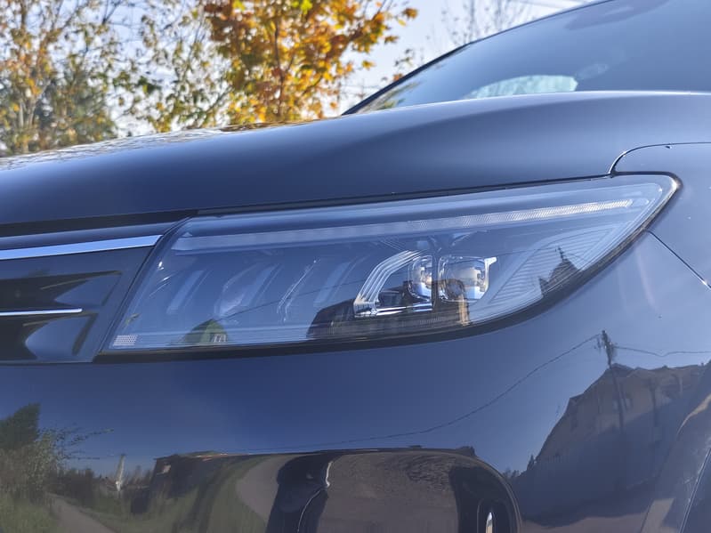Передние фары адаптивные. Автомобиль сам регулирует угол наклона и поворота фар. Дополнительные настройки можно сделать через мультимедийную систему. Seres M7 умеет сам включать и выключать дальний свет. Работает это неплохо, особенно заметно это было по дороге из Владимира в Иваново, где есть совершенно тёмный участок. Правда, создаётся впечатление, что автомобиль перестраховывается и выключает дальний свет фар гораздо раньше, чем это можно было сделать вручную. За ближний и за дальний свет у нас отвечают светодиоды.