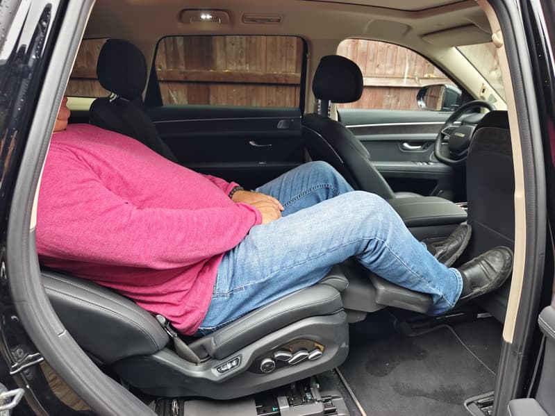 Нужно только отметить, что использование пассажирского кресла в виде кровати доставляет удобство пассажиру на втором ряду, но автоматически исключает наличие пассажира на переднем кресле. Либо делает его жизнь крайне некомфортной.