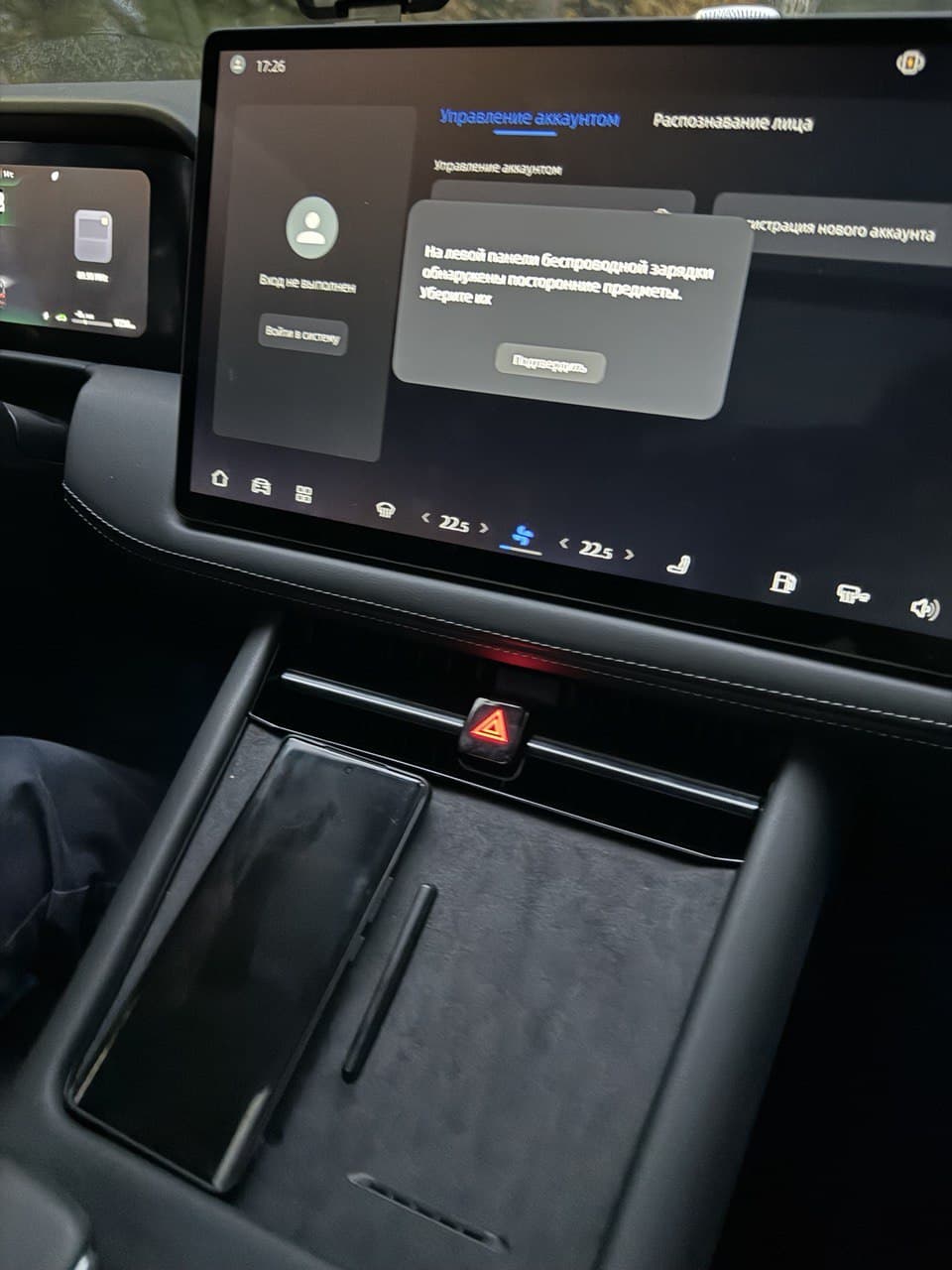 Кстати говоря, смартфон в чехле мультимедийная система распознаёт как инородный предмет и заряжать отказывается. Поэтому, либо чехол нужен соответствующий, либо следует заряжать смартфон через провод.