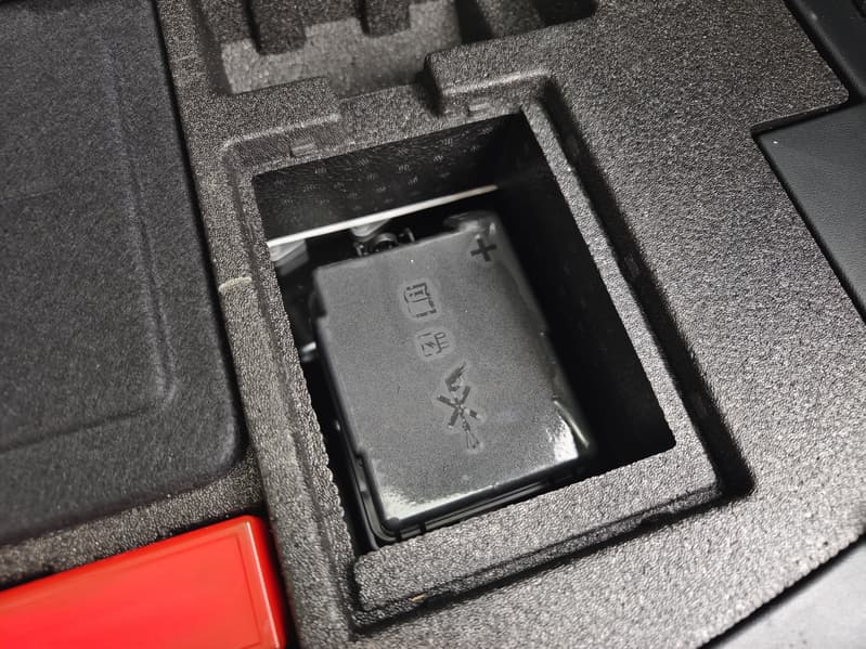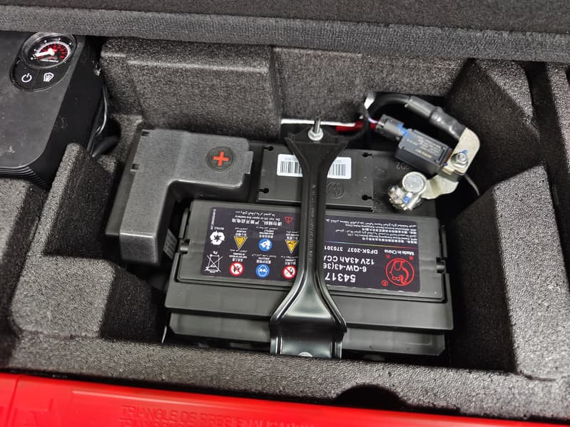 Там расположен 12-вольтовый аккумулятор и набор для ремонта шин.