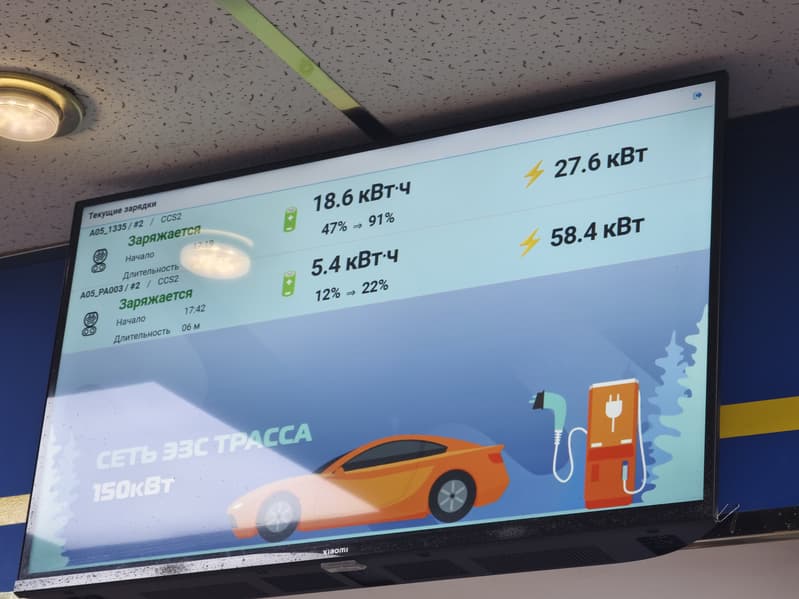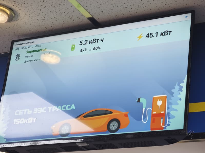 Так, например, на АЗС «Трасса» время зарядки с 40% до 100% заняло чуть больше 20 минут, за которые удалось спокойно попить чашечку кофе и решить пару рабочих вопросов. Стоимость полученной энергии при этом составила 356 рублей.