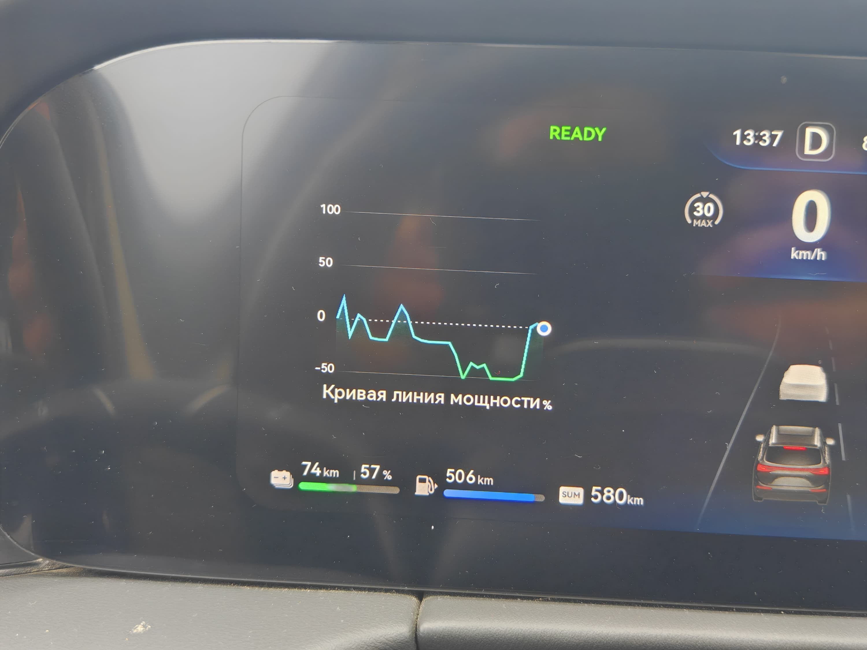 Соответственно, выбирая различные пресеты или подстраивая режимы управления под свой стиль вождения, можно добиться или режима максимального ускорения, путём быстрого расхода электричества, или же наибольшей экономичности, в связке с оптимальной настройкой включения бензинового двигателя.