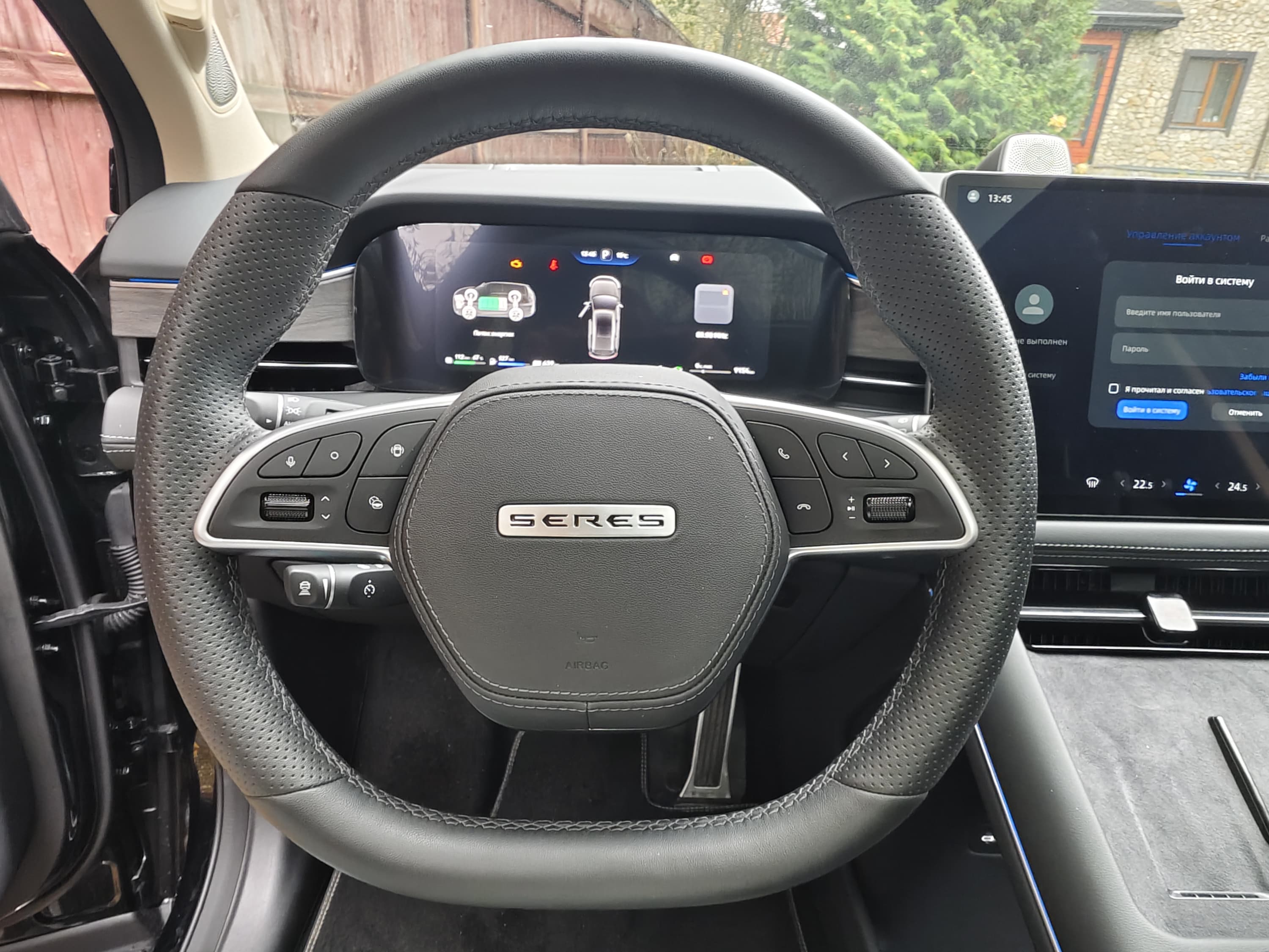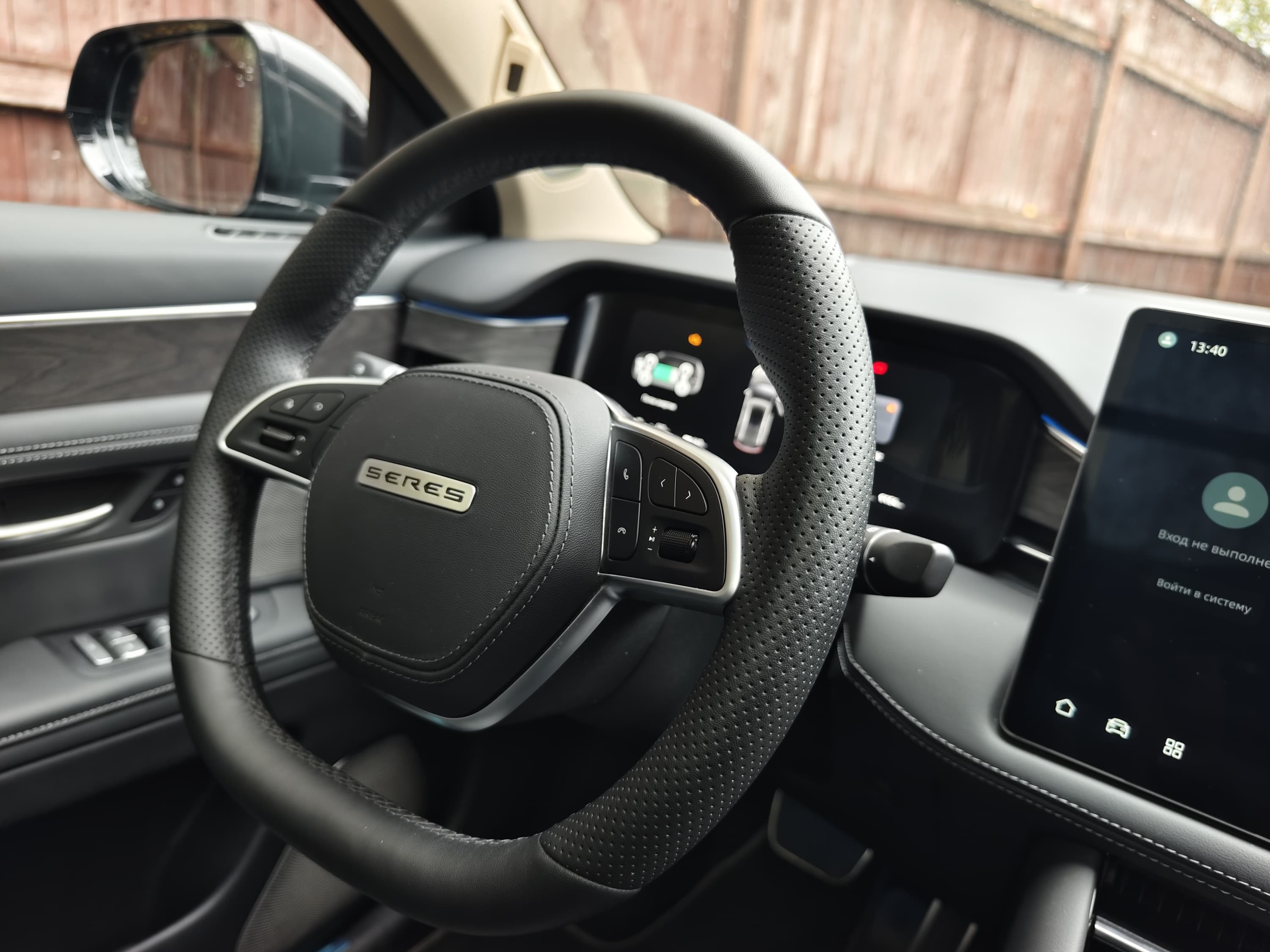 Руль регулируется по высоте и по вылету механически, что было несколько удивительно увидеть в автомобиле подобного премиального класса. BMW X5, в лиге которого «играет» Seres, такую опцию получают уже в базе.