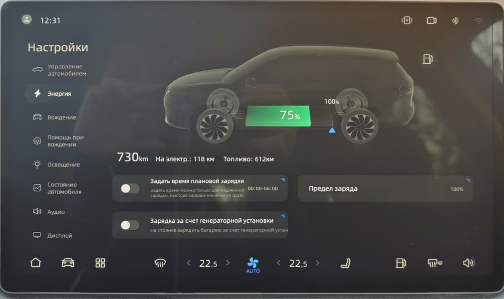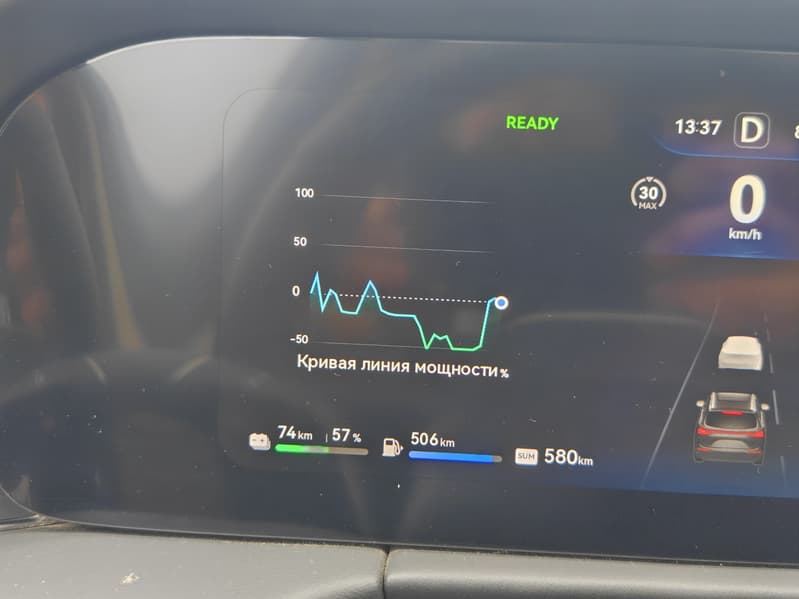 При отсутствии поблизости станций электрозарядок, можно активировать самоподзарядку на стоянке. Это может быть полезно, например, во время остановки в долгой дороге, когда необходимо восполнить заряд батареи.
