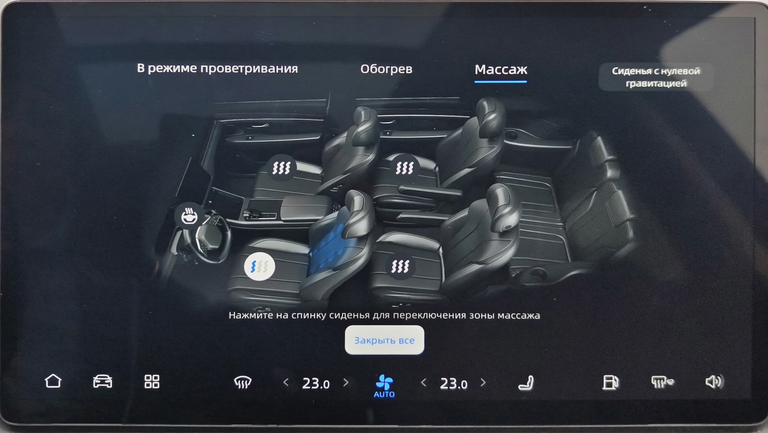 Для всех сидений двух рядов предусмотрены подогрев, вентиляция и массаж.
