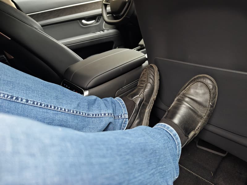 Но расстояния в ногах до сидения переднего пассажира остаётся совсем немного, и оно будет неминуемо испачкано.