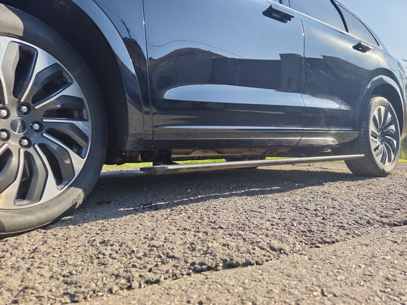Выдвигающиеся пороги имеют надёжную и удобную конструкцию. Правда, места соединения содержат ниши, куда могут забивать камни и посторонние предметы.